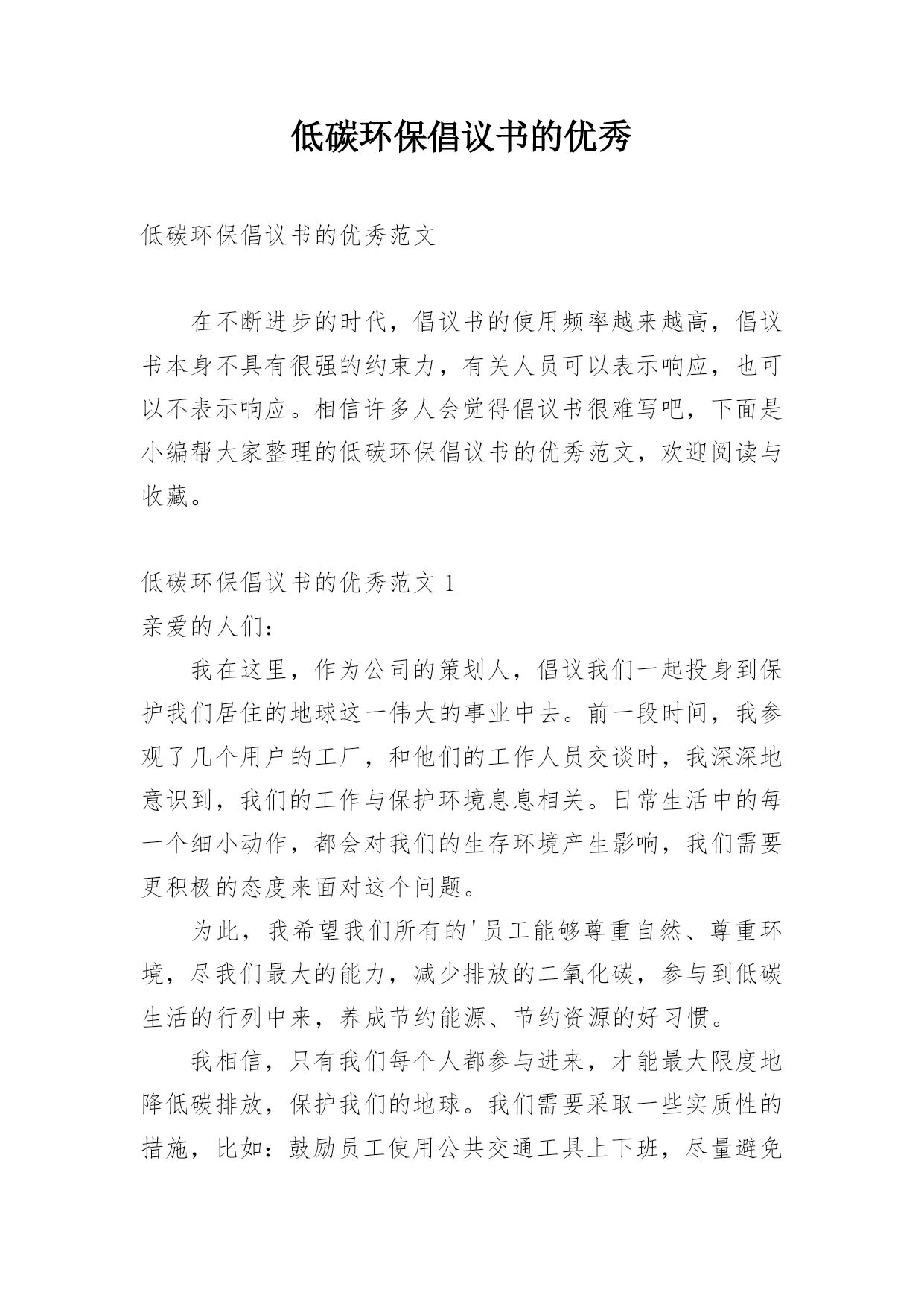低碳环保倡议书的优秀低碳环保倡议书的优秀范文在不断进步的时代,倡议书的使用频率越来越高,倡议书本身不具有很强的约束力,有关人员可以表示响应,也可以不表示响应。相信许多人会觉得倡议书很难写吧,下面是小编帮大家整理的低碳环保倡议书的优秀范文,欢迎阅读与收藏。低碳环保倡议书的优秀范文1亲爱的人们:我在这里,作为公司的策划人,倡议我们一起投身到保护我们居住的地球这一伟大的事业中去。前一段时间,我参观了几个用户的工厂,和他们的工作人员交谈时,我深深地意识到,我们的工作与保护环境息息相关。日常生活中的每一个细小动作,