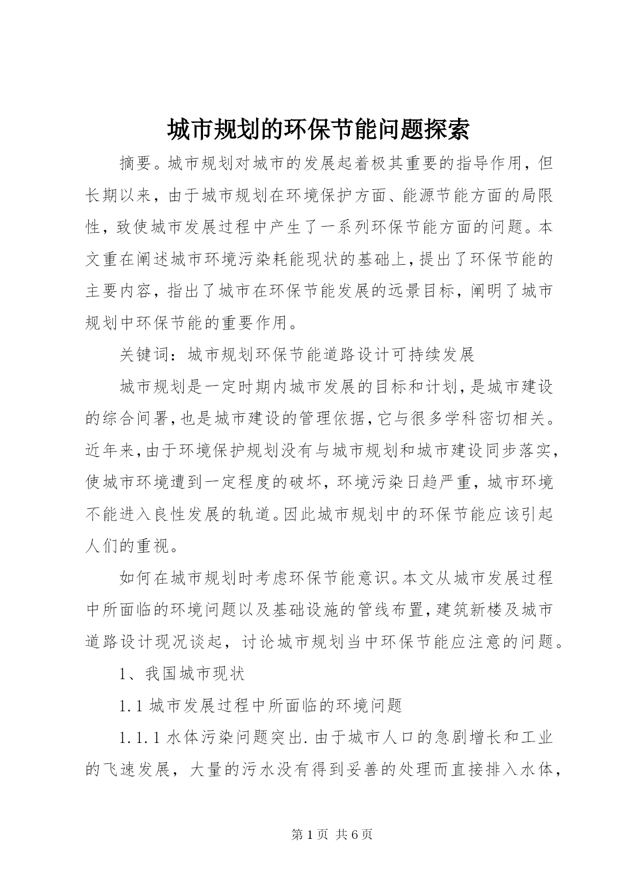 第PAGE\*Arabic\*MERGEFORMAT6页共NUMPAGES\*MERGEFORMAT6页城市规划的环保节能问题探索摘要。城市规划对城市的发展起着极其重要的指导作用,但长期以来,由于城市规划在环境保护方面、能源节能方面的局限性,致使城市发展过程中产生了一系列环保节能方面的问题。本文重在阐述城市环境污染耗能现状的基础上,提出了环保节能的主要内容,指出了城市在环保节能发展的远景目标,阐明了城市规划中环保节能的重要作用。关键词:城市规划环保节能道路设计可持续发展城市规划是一定时期内城市