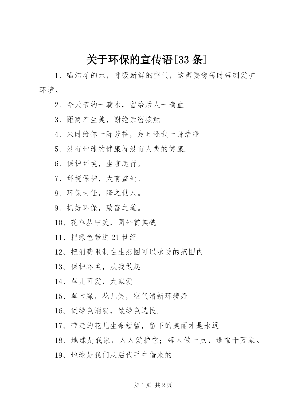 第PAGE\*Arabic\*MERGEFORMAT2页共NUMPAGES\*MERGEFORMAT2页关于环保的宣传语[33条]1、喝洁净的水,呼吸新鲜的空气,这需要您每时每刻爱护环境。2、今天节约一滴水,留给后人一滴血3、距离产生美,谢绝亲密接触4、来时给你一阵芳香,走时还我一身洁净5、没有地球的健康就没有人类的健康.6、保护环境,坐言起行。7、环境保护,大有益处。8、环保大任,降之世人。9、抓好环保,致富之道。10、花草丛中笑,园外赏其貌11、把绿色带进21世纪12、把消费限制在生态圈可