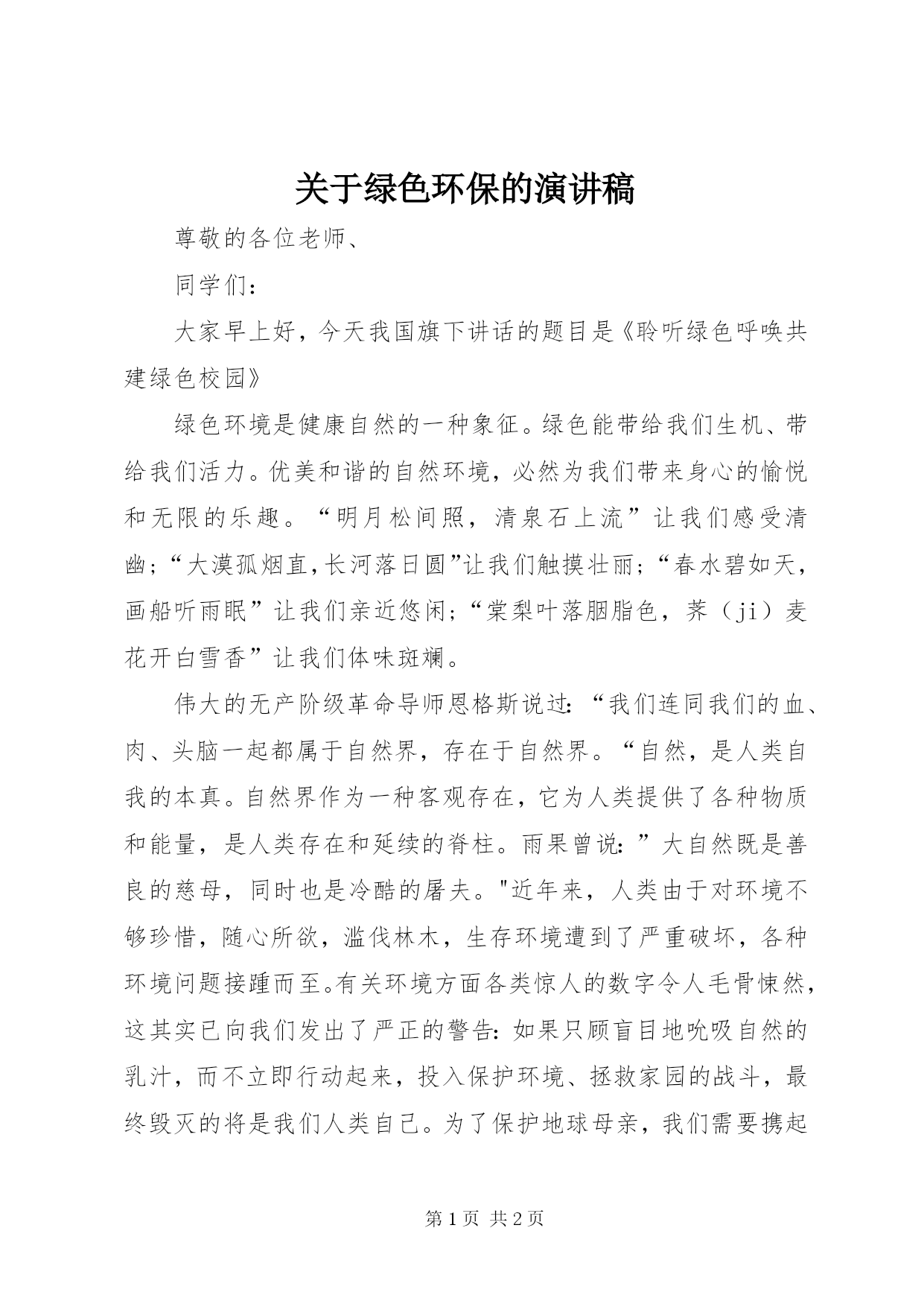 第PAGE\*Arabic\*MERGEFORMAT2页共NUMPAGES\*MERGEFORMAT2页关于绿色环保的演讲稿尊敬的各位老师、同学们:大家早上好,今天我国旗下讲话的题目是《聆听绿色呼唤共建绿色校园》绿色环境是健康自然的一种象征。绿色能带给我们生机、带给我们活力。优美和谐的自然环境,必然为我们带来身心的愉悦和无限的乐趣。“明月松间照,清泉石上流”让我们感受清幽;“大漠孤烟直,长河落日圆”让我们触摸壮丽;“春水碧如天,画船听雨眠”让我们亲近悠闲;“棠梨叶落胭脂色,荠(ji)麦花开白雪