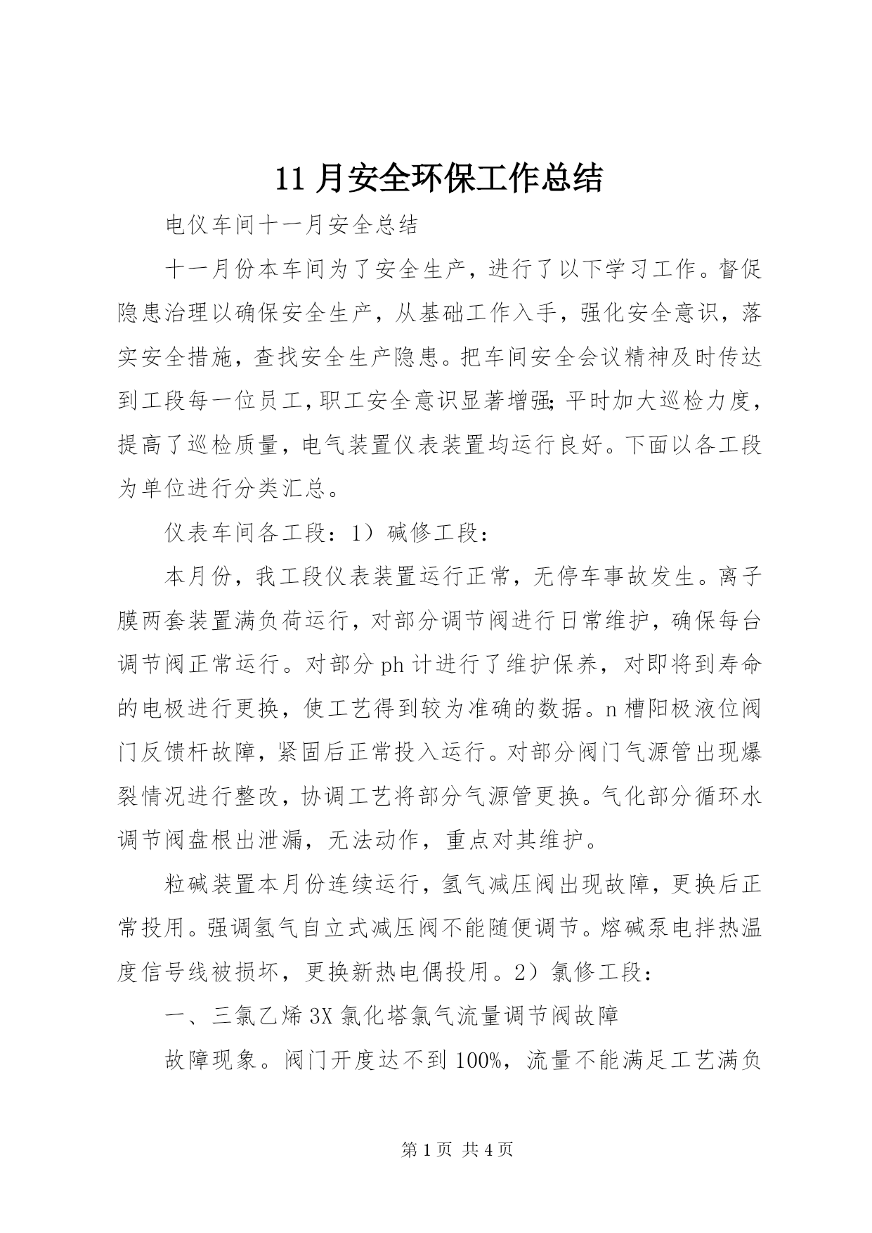 第PAGE\*Arabic\*MERGEFORMAT4页共NUMPAGES\*MERGEFORMAT4页11月安全环保工作总结电仪车间十一月安全总结十一月份本车间为了安全生产,进行了以下学习工作。督促隐患治理以确保安全生产,从基础工作入手,强化安全意识,落实安全措施,查找安全生产隐患。把车间安全会议精神及时传达到工段每一位员工,职工安全意识显著增强;平时加大巡检力度,提高了巡检质量,电气装置仪表装置均运行良好。下面以各工段为单位进行分类汇总。仪表车间各工段:1)碱修工段:本月份,我工段仪表装置