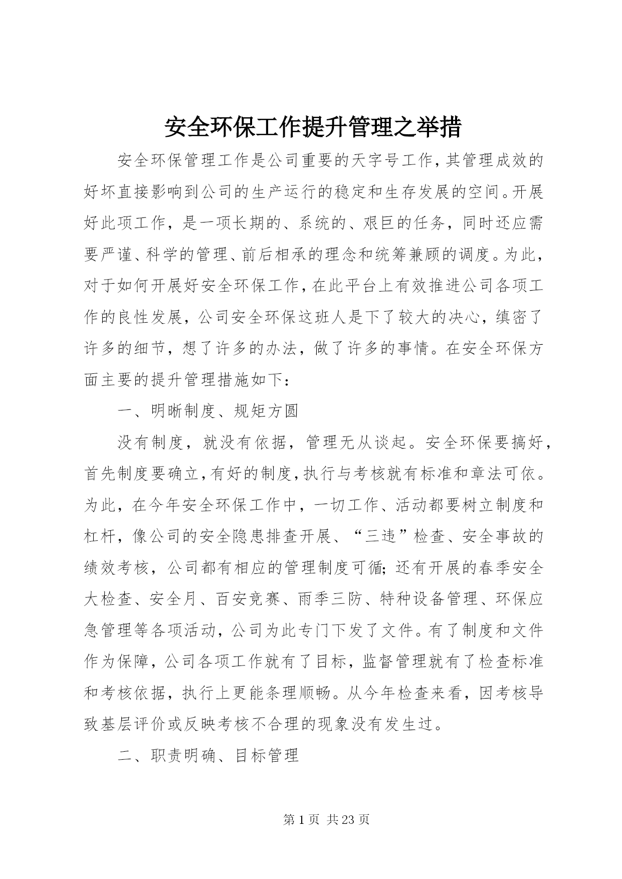 第PAGE\*Arabic\*MERGEFORMAT23页共NUMPAGES\*MERGEFORMAT23页安全环保工作提升管理之举措安全环保管理工作是公司重要的天字号工作,其管理成效的好坏直接影响到公司的生产运行的稳定和生存发展的空间。开展好此项工作,是一项长期的、系统的、艰巨的任务,同时还应需要严谨、科学的管理、前后相承的理念和统筹兼顾的调度。为此,对于如何开展好安全环保工作,在此平台上有效推进公司各项工作的良性发展,公司安全环保这班人是下了较大的决心,缜密了许多的细节,想了许多的办法,做