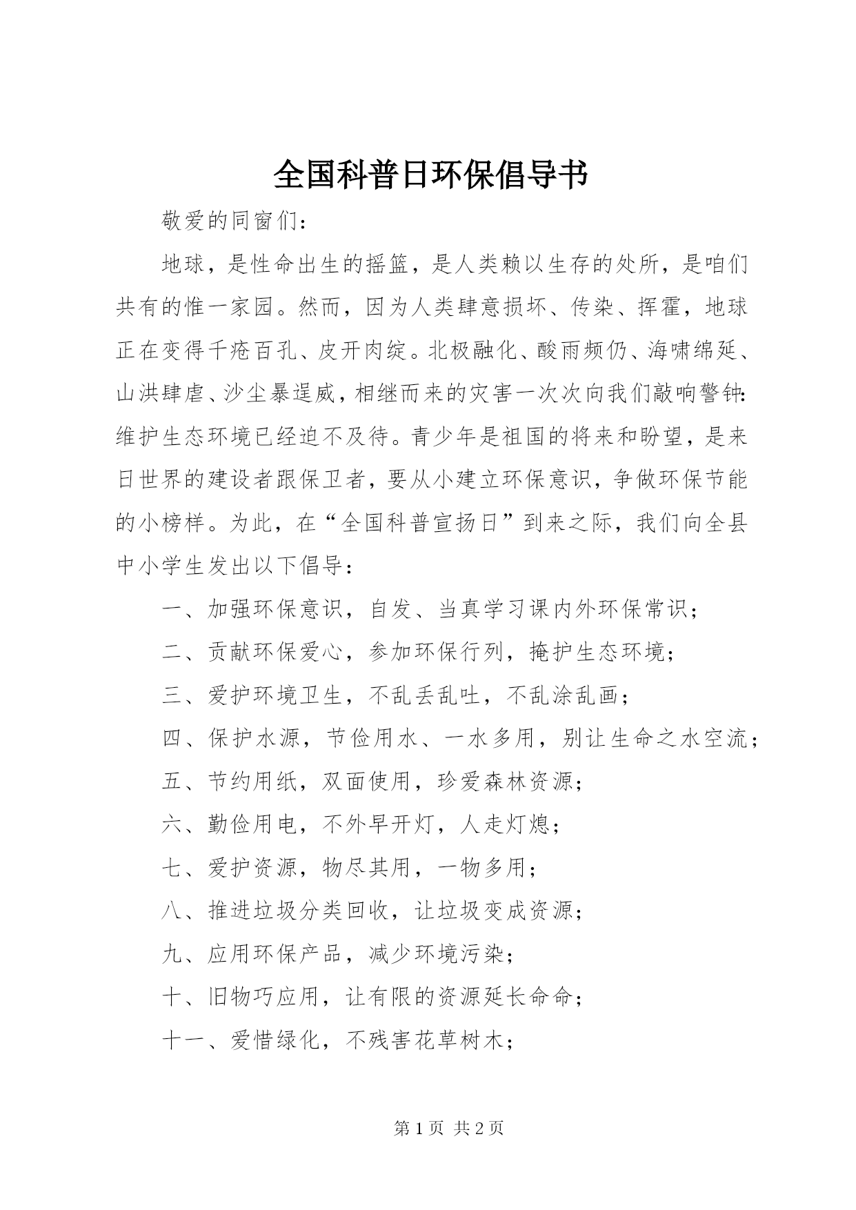 第PAGE\*Arabic\*MERGEFORMAT2页共NUMPAGES\*MERGEFORMAT2页全国科普日环保倡导书敬爱的同窗们:地球,是性命出生的摇篮,是人类赖以生存的处所,是咱们共有的惟一家园。然而,因为人类肆意损坏、传染、挥霍,地球正在变得千疮百孔、皮开肉绽。北极融化、酸雨频仍、海啸绵延、山洪肆虐、沙尘暴逞威,相继而来的灾害一次次向我们敲响警钟:维护生态环境已经迫不及待。青少年是祖国的将来和盼望,是来日世界的建设者跟保卫者,要从小建立环保意识,争做环保节能的小榜样。为此,在“全国