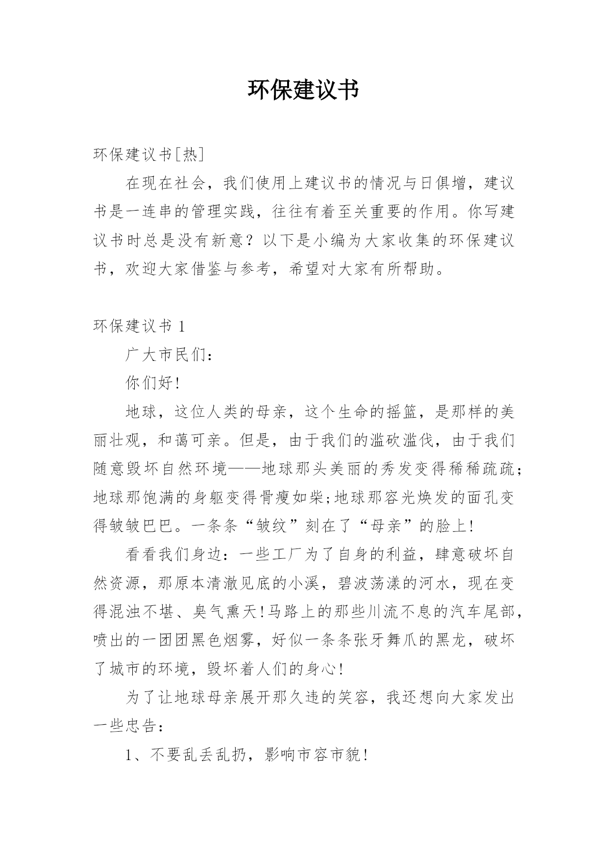 环保建议书环保建议书[热]在现在社会,我们使用上建议书的情况与日俱增,建议书是一连串的管理实践,往往有着至关重要的作用。你写建议书时总是没有新意?以下是小编为大家收集的环保建议书,欢迎大家借鉴与参考,希望对大家有所帮助。环保建议书1广大市民们:你们好!地球,这位人类的母亲,这个生命的摇篮,是那样的美丽壮观,和蔼可亲。但是,由于我们的滥砍滥伐,由于我们随意毁坏自然环境——地球那头美丽的秀发变得稀稀疏疏;地球那饱满的身躯变得骨瘦如柴;地球那容光焕发的面孔变得皱皱巴巴。一条条“皱纹”刻在了“母亲”的脸上!看看我