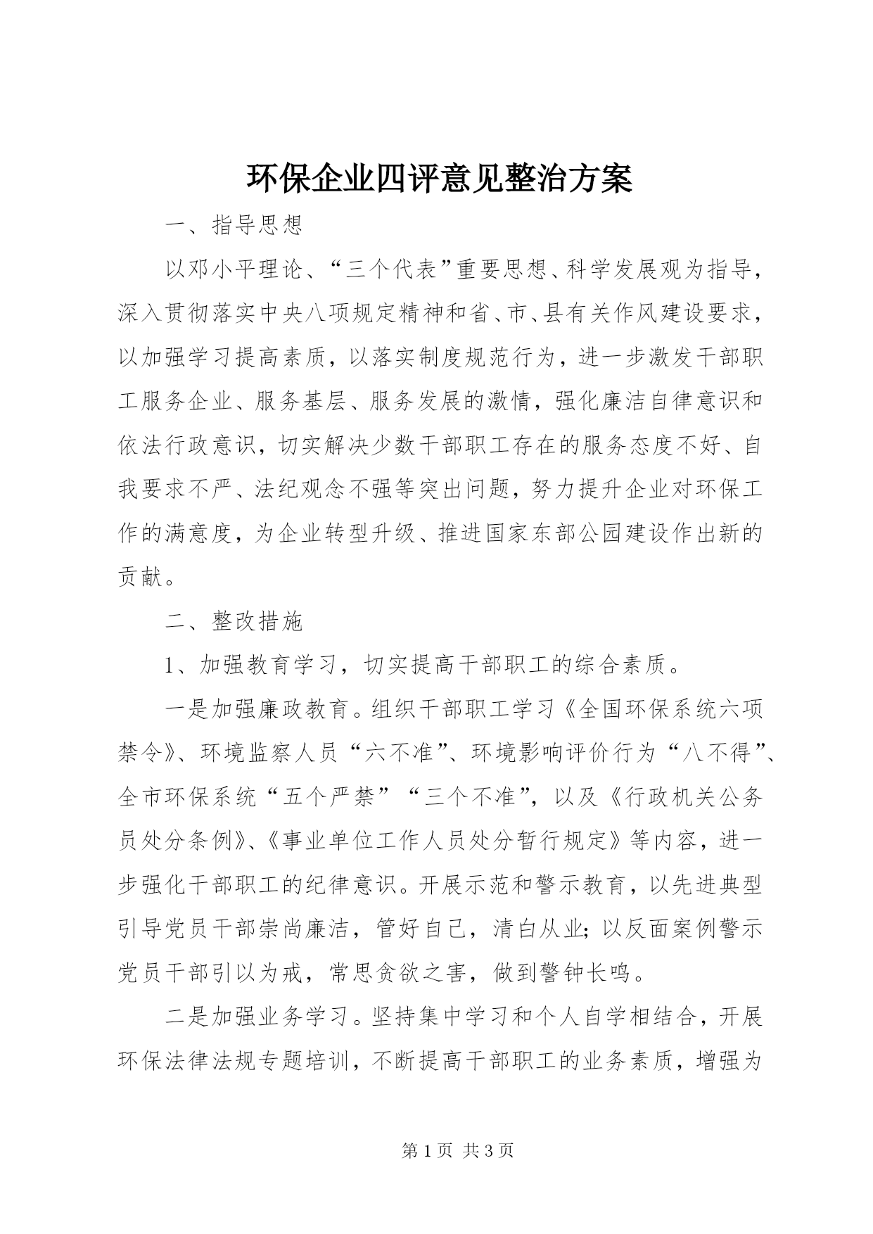 第PAGE\*Arabic\*MERGEFORMAT3页共NUMPAGES\*MERGEFORMAT3页环保企业四评意见整治方案一、指导思想以邓小平理论、“三个代表”重要思想、科学发展观为指导,深入贯彻落实中央八项规定精神和省、市、县有关作风建设要求,以加强学习提高素质,以落实制度规范行为,进一步激发干部职工服务企业、服务基层、服务发展的激情,强化廉洁自律意识和依法行政意识,切实解决少数干部职工存在的服务态度不好、自我要求不严、法纪观念不强等突出问题,努力提升企业对环保工作的满意度,为企业转型