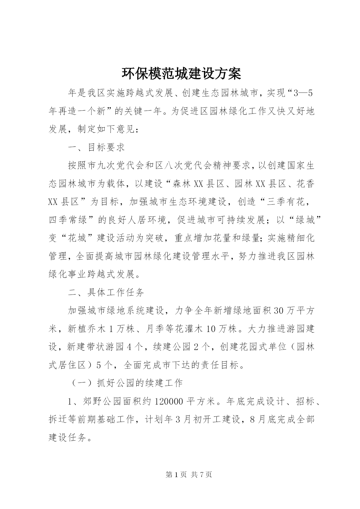 第PAGE\*Arabic\*MERGEFORMAT7页共NUMPAGES\*MERGEFORMAT7页环保模范城建设方案年是我区实施跨越式发展、创建生态园林城市,实现“3—5年再造一个新”的关键一年。为促进区园林绿化工作又快又好地发展,制定如下意见:一、目标要求按照市九次党代会和区八次党代会精神要求,以创建国家生态园林城市为载体,以建设“森林XX县区、园林XX县区、花香XX县区”为目标,加强城市生态环境建设,创造“三季有花,四季常绿”的良好人居环境,促进城市可持续发展;以“绿城”变“花城”建