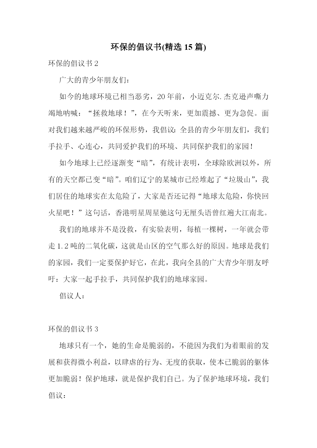 环保的倡议书(精选15篇)环保的倡议书2广大的青少年朋友们:如今的地球环境已相当恶劣,20年前,小迈克尔.杰克逊声嘶力竭地呐喊:“拯救地球!”,在今天听来,更加震撼、更为急促。面对我们越来越严峻的环保形势,我倡议:全县的青少年朋友们,我们手拉手、心连心,共同爱护我们的环境、共同保护我们的家园!如今地球上已经逐渐变“暗”,有统计表明,全球除欧洲以外,所有的天空都已变“暗”。咱们辽宁的某城市已经堆起了“垃圾山”,我们居住的地球实在太危险了,大家是否还记得“地球太危险,你快回火星吧!”这句话,香港明星周星驰这句