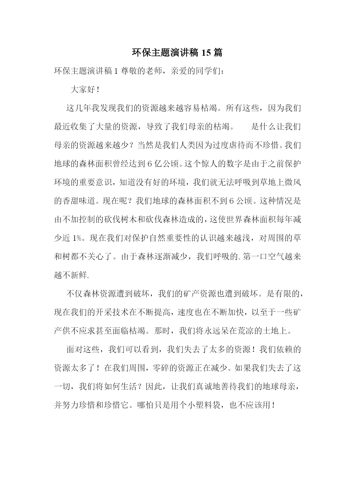 环保主题演讲稿15篇环保主题演讲稿1尊敬的老师,亲爱的同学们:大家好!这几年我发现我们的资源越来越容易枯竭。所有这些,因为我们最近收集了大量的资源,导致了我们母亲的枯竭。是什么让我们母亲的资源越来越少?当然是我们人类因为过度虐待而不珍惜。我们地球的森林面积曾经达到6亿公顷。这个惊人的数字是由于之前保护环境的重要意识,知道没有好的环境,我们就无法呼吸到草地上微风的香甜味道。现在呢?我们地球的森林面积不到6公顷。这种情况是由不加控制的砍伐树木和砍伐森林造成的,这使世界森林面积每年减少近1%。现在我们对保护自然