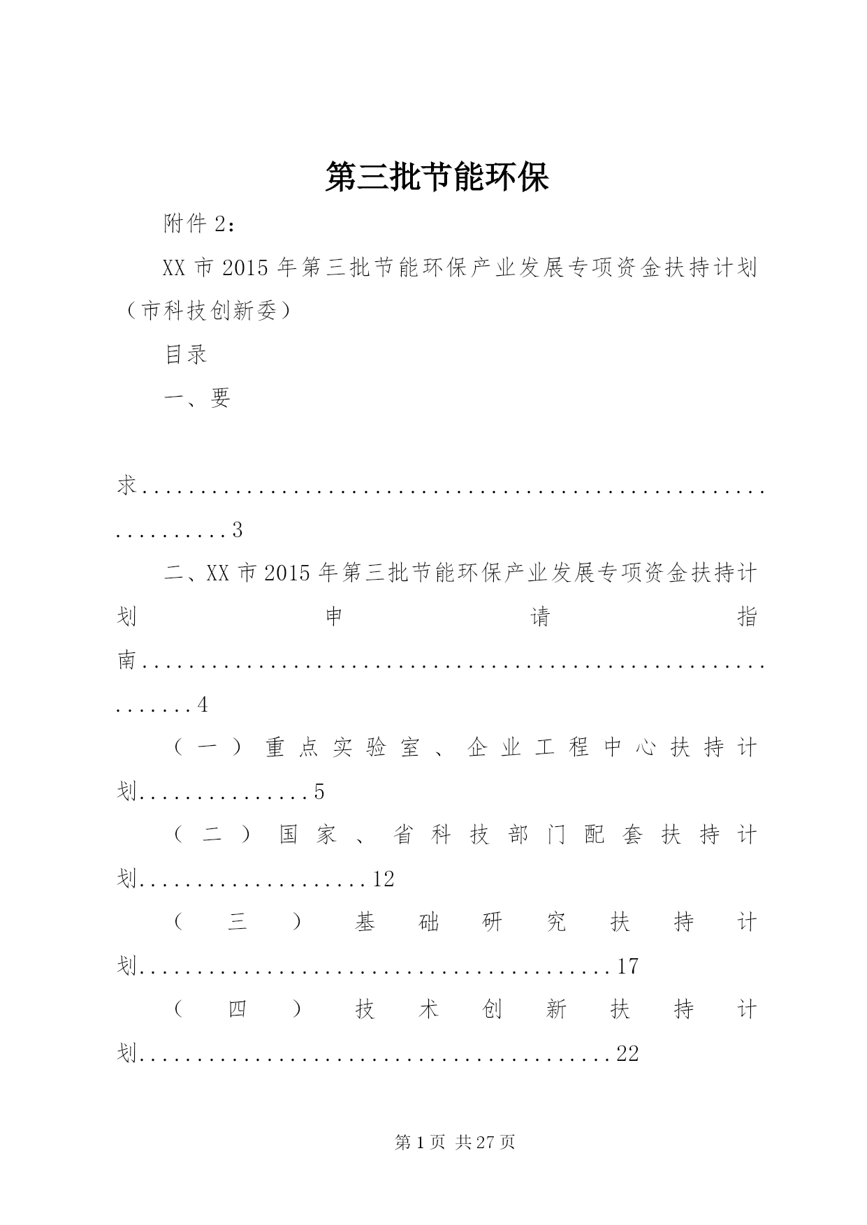 第PAGE\*Arabic\*MERGEFORMAT27页共NUMPAGES\*MERGEFORMAT27页第三批节能环保附件2:XX市2015年第三批节能环保产业发展专项资金扶持计划(市科技创新委)目录一、要求................................................................3二、XX市2015年第三批节能环保产业发展专项资金扶持计划申请指南.............................................