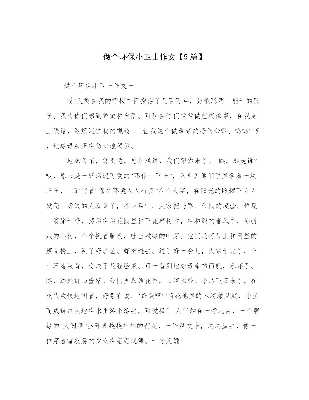 做个环保小卫士作文【5篇】.docx