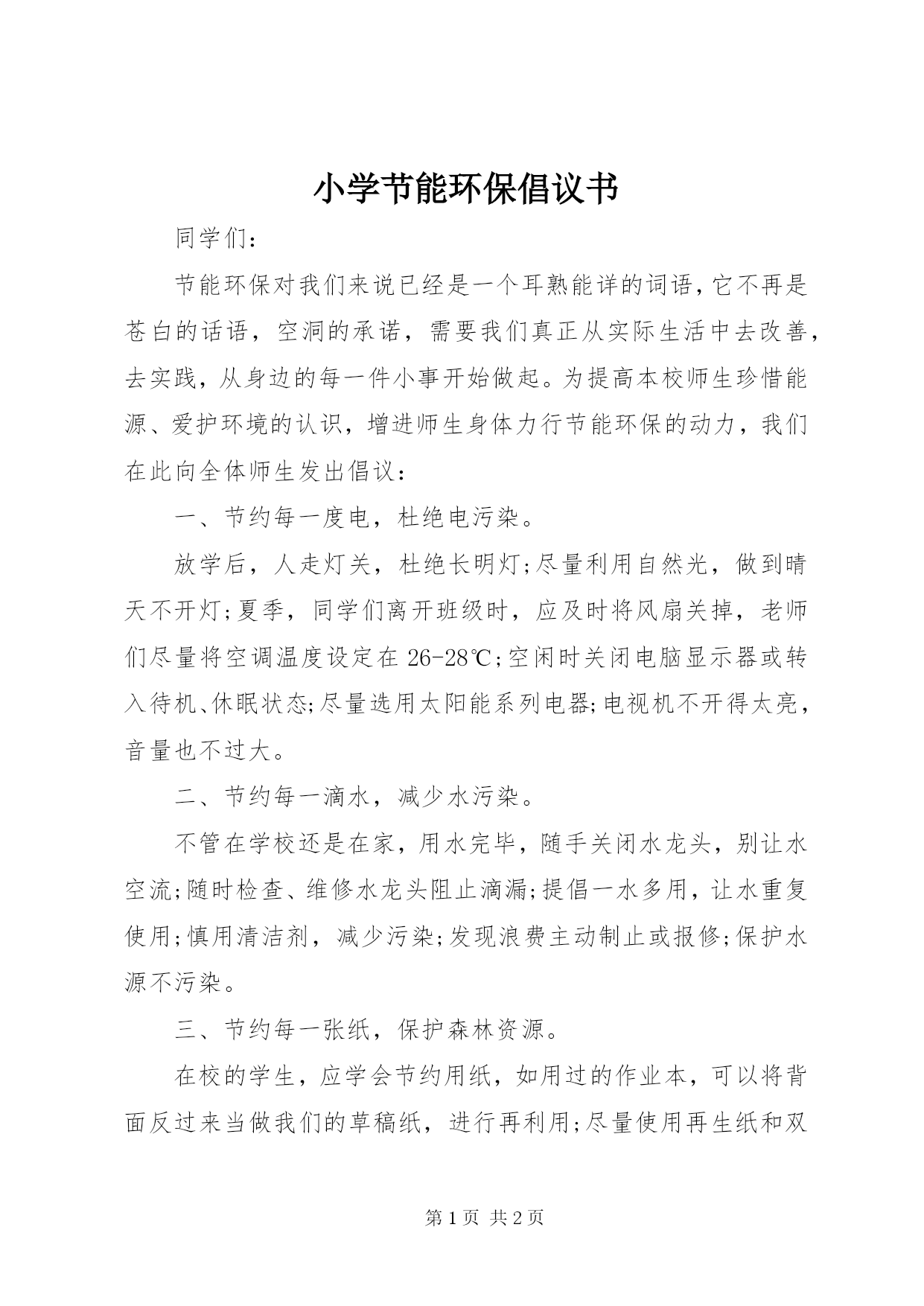 小学节能环保倡议书 (2).docx