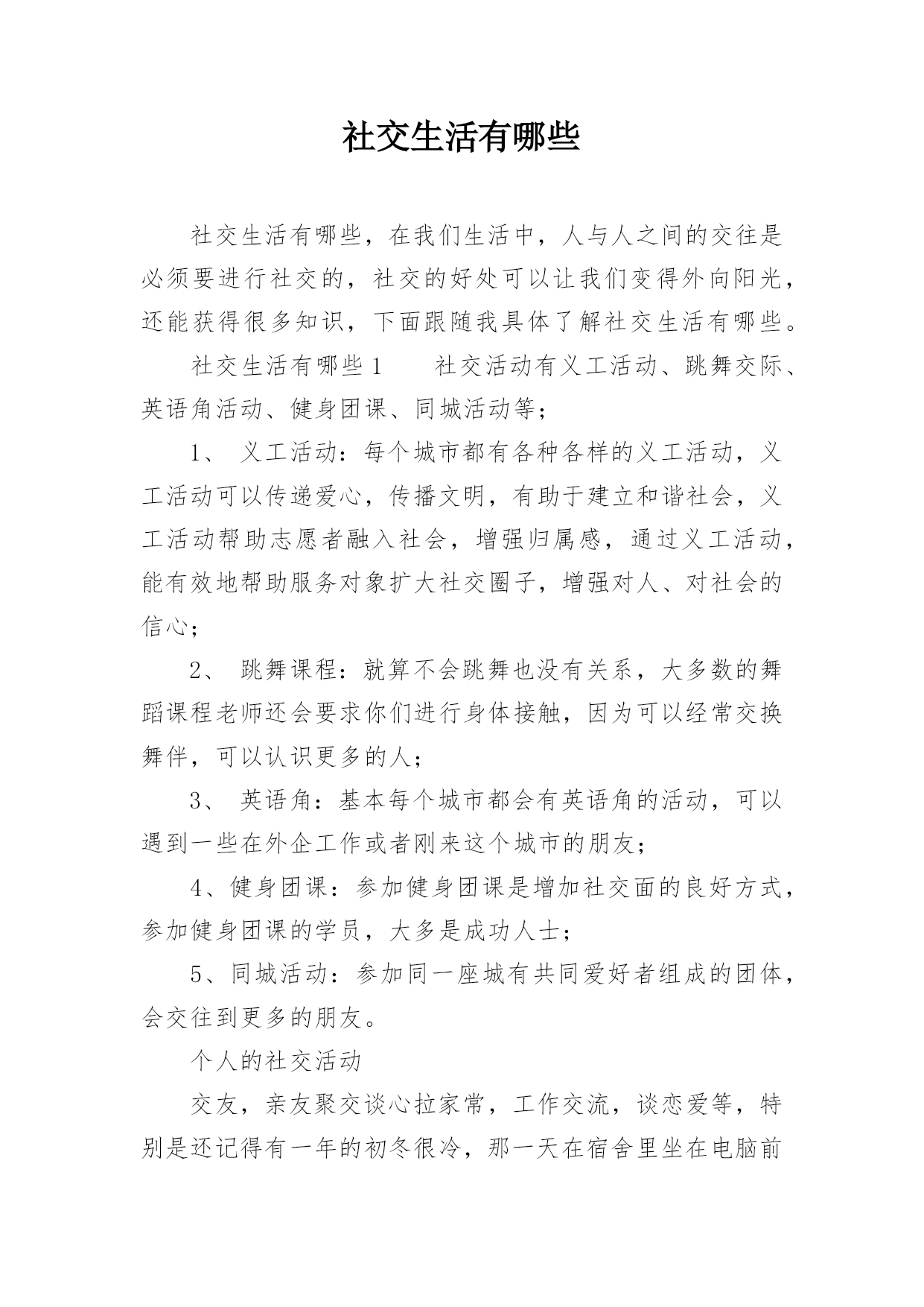 社交生活有哪些社交生活有哪些,在我们生活中,人与人之间的交往是必须要进行社交的,社交的好处可以让我们变得外向阳光,还能获得很多知识,下面跟随我具体了解社交生活有哪些。社交生活有哪些1社交活动有义工活动、跳舞交际、英语角活动、健身团课、同城活动等;1、义工活动:每个城市都有各种各样的义工活动,义工活动可以传递爱心,传播文明,有助于建立和谐社会,义工活动帮助志愿者融入社会,增强归属感,通过义工活动,能有效地帮助服务对象扩大社交圈子,增强对人、对社会的信心;2、跳舞课程:就算不会跳舞也没有关系,大多数的舞蹈课程