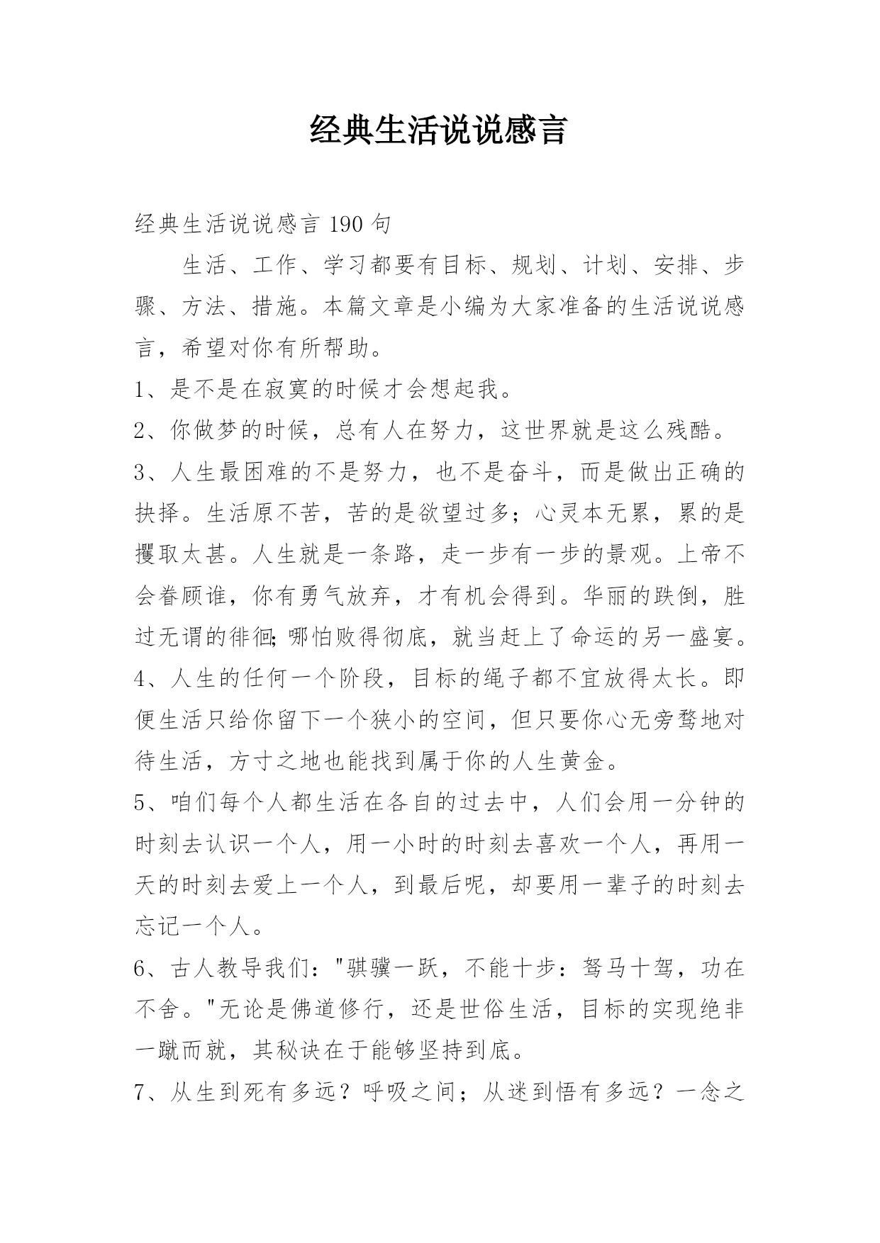 经典生活说说感言经典生活说说感言190句生活、工作、学习都要有目标、规划、计划、安排、步骤、方法、措施。本篇文章是小编为大家准备的生活说说感言,希望对你有所帮助。1、是不是在寂寞的时候才会想起我。2、你做梦的时候,总有人在努力,这世界就是这么残酷。3、人生最困难的不是努力,也不是奋斗,而是做出正确的抉择。生活原不苦,苦的是欲望过多;心灵本无累,累的是攫取太甚。人生就是一条路,走一步有一步的景观。上帝不会眷顾谁,你有勇气放弃,才有机会得到。华丽的跌倒,胜过无谓的徘徊;哪怕败得彻底,就当赶上了命运的另一盛宴。