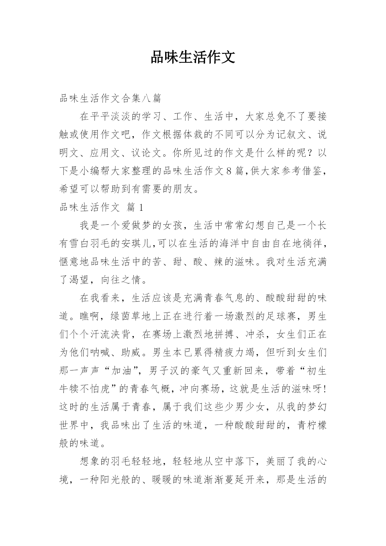 品味生活作文品味生活作文合集八篇在平平淡淡的学习、工作、生活中,大家总免不了要接触或使用作文吧,作文根据体裁的不同可以分为记叙文、说明文、应用文、议论文。你所见过的作文是什么样的呢?以下是小编帮大家整理的品味生活作文8篇,供大家参考借鉴,希望可以帮助到有需要的朋友。品味生活作文篇1我是一个爱做梦的女孩,生活中常常幻想自己是一个长有雪白羽毛的安琪儿,可以在生活的海洋中自由自在地徜徉,惬意地品味生活中的苦、甜、酸、辣的滋味。我对生活充满了渴望,向往之情。在我看来,生活应该是充满青春气息的、酸酸甜甜的味道。瞧啊