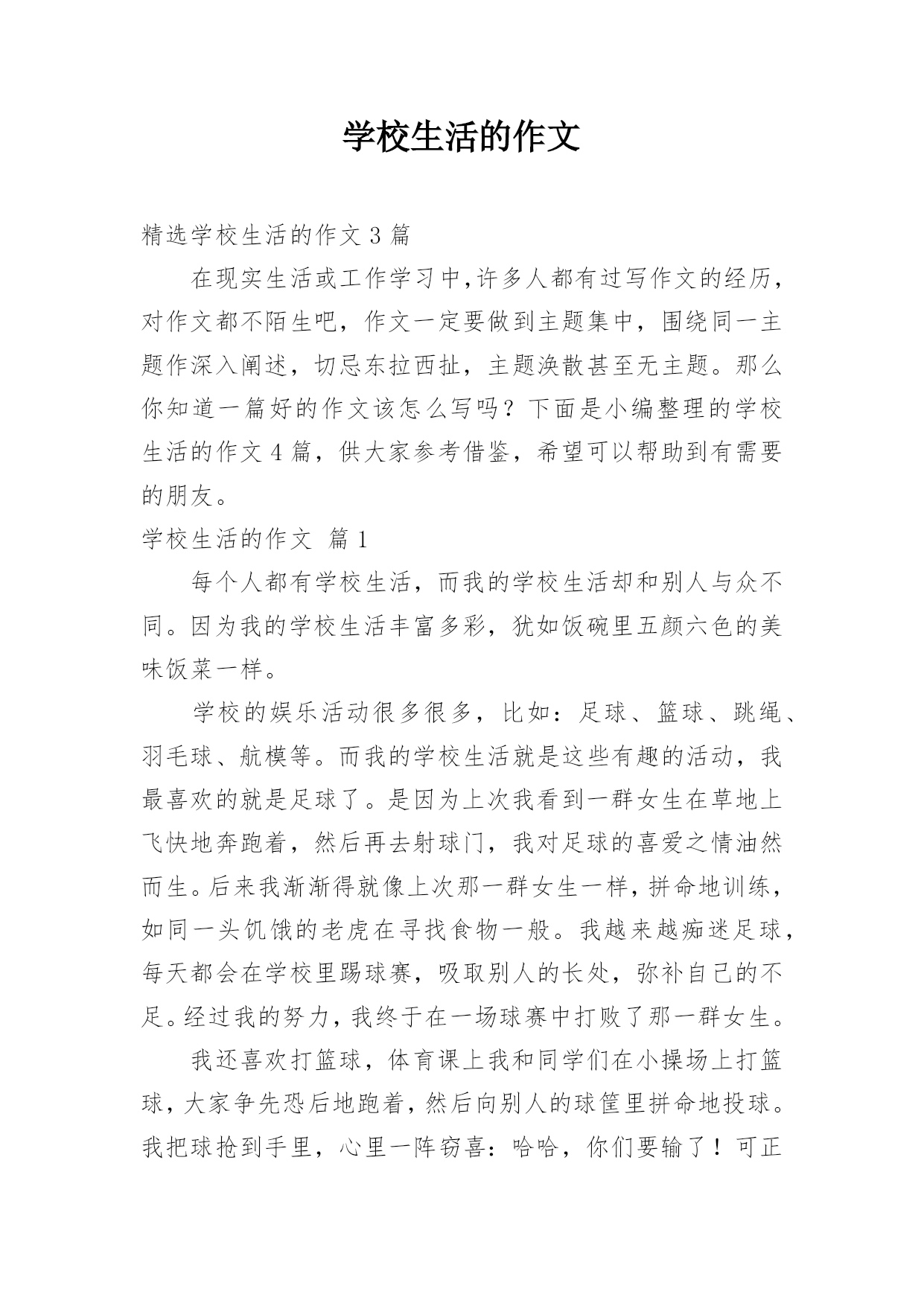 学校生活的作文精选学校生活的作文3篇在现实生活或工作学习中,许多人都有过写作文的经历,对作文都不陌生吧,作文一定要做到主题集中,围绕同一主题作深入阐述,切忌东拉西扯,主题涣散甚至无主题。那么你知道一篇好的作文该怎么写吗?下面是小编整理的学校生活的作文4篇,供大家参考借鉴,希望可以帮助到有需要的朋友。学校生活的作文篇1每个人都有学校生活,而我的学校生活却和别人与众不同。因为我的学校生活丰富多彩,犹如饭碗里五颜六色的美味饭菜一样。学校的娱乐活动很多很多,比如:足球、篮球、跳绳、羽毛球、航模等。而我的学校生活就