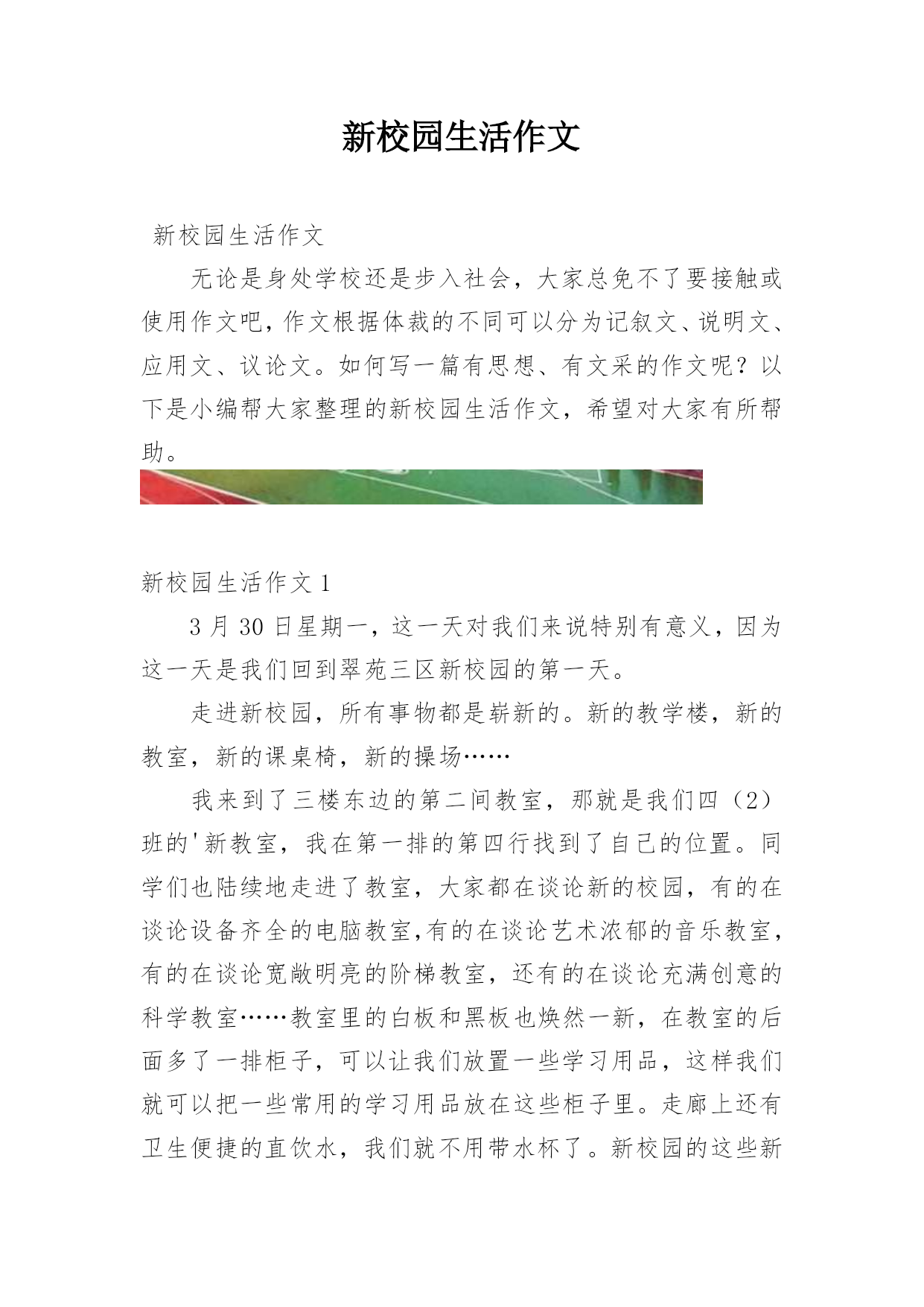 新校园生活作文新校园生活作文无论是身处学校还是步入社会,大家总免不了要接触或使用作文吧,作文根据体裁的不同可以分为记叙文、说明文、应用文、议论文。如何写一篇有思想、有文采的作文呢?以下是小编帮大家整理的新校园生活作文,希望对大家有所帮助。新校园生活作文13月30日星期一,这一天对我们来说特别有意义,因为这一天是我们回到翠苑三区新校园的第一天。走进新校园,所有事物都是崭新的。新的教学楼,新的教室,新的课桌椅,新的操场……我来到了三楼东边的第二间教室,那就是我们四(2)班的'新教室,我在第一排的第四行找到了自