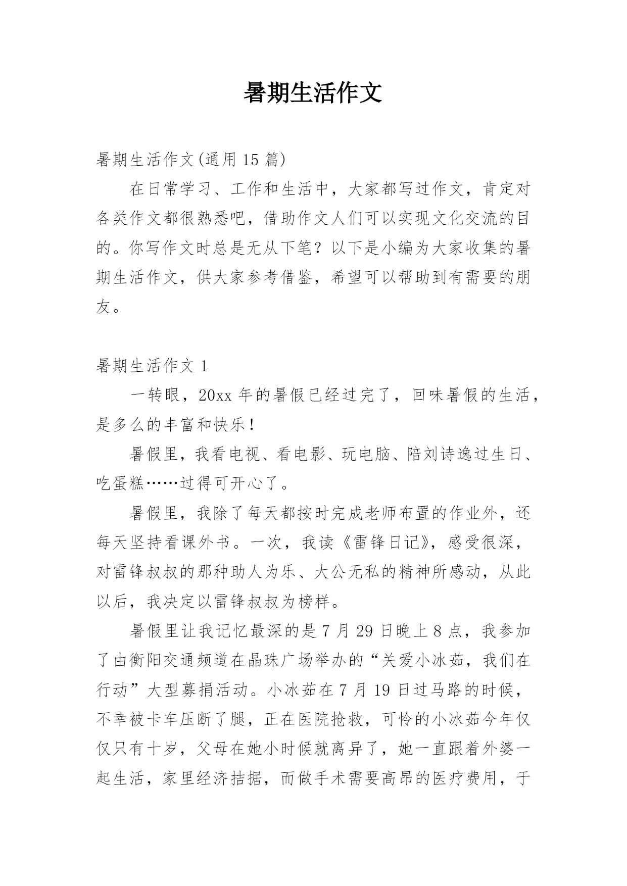 暑期生活作文暑期生活作文(通用15篇)在日常学习、工作和生活中,大家都写过作文,肯定对各类作文都很熟悉吧,借助作文人们可以实现文化交流的目的。你写作文时总是无从下笔?以下是小编为大家收集的暑期生活作文,供大家参考借鉴,希望可以帮助到有需要的朋友。暑期生活作文1一转眼,20xx年的暑假已经过完了,回味暑假的生活,是多么的丰富和快乐!暑假里,我看电视、看电影、玩电脑、陪刘诗逸过生日、吃蛋糕……过得可开心了。暑假里,我除了每天都按时完成老师布置的作业外,还每天坚持看课外书。一次,我读《雷锋日记》,感受很深,对雷