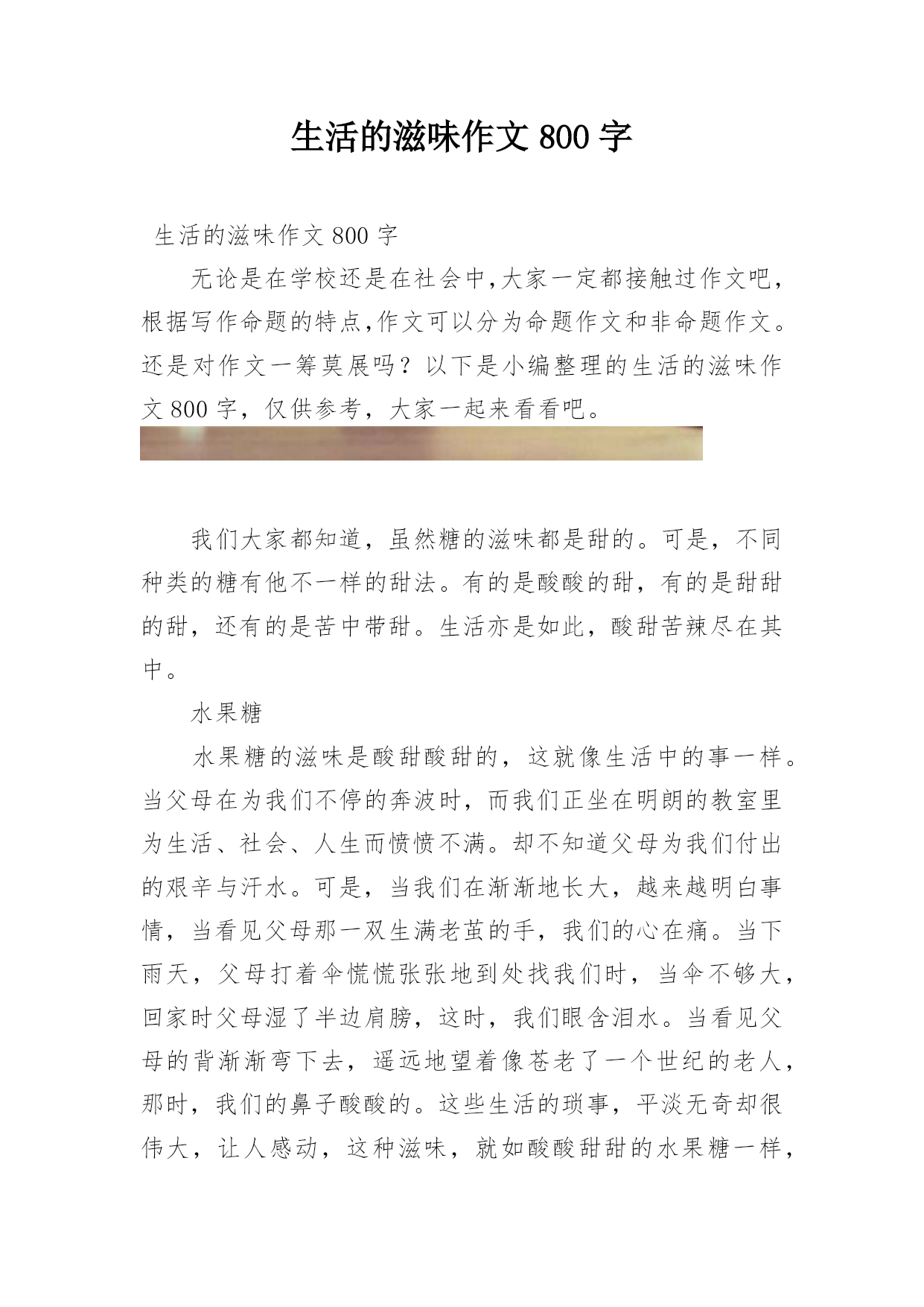 生活的滋味作文800字生活的滋味作文800字无论是在学校还是在社会中,大家一定都接触过作文吧,根据写作命题的特点,作文可以分为命题作文和非命题作文。还是对作文一筹莫展吗?以下是小编整理的生活的滋味作文800字,仅供参考,大家一起来看看吧。我们大家都知道,虽然糖的滋味都是甜的。可是,不同种类的糖有他不一样的甜法。有的是酸酸的甜,有的是甜甜的甜,还有的是苦中带甜。生活亦是如此,酸甜苦辣尽在其中。水果糖水果糖的滋味是酸甜酸甜的,这就像生活中的事一样。当父母在为我们不停的奔波时,而我们正坐在明朗的教室里为生活、社