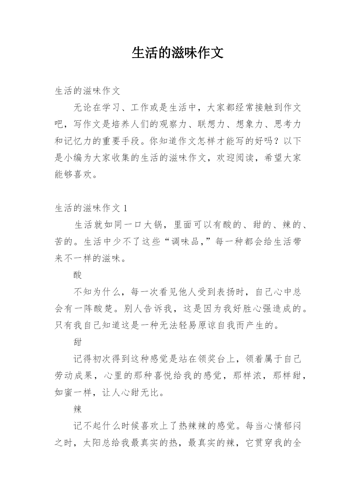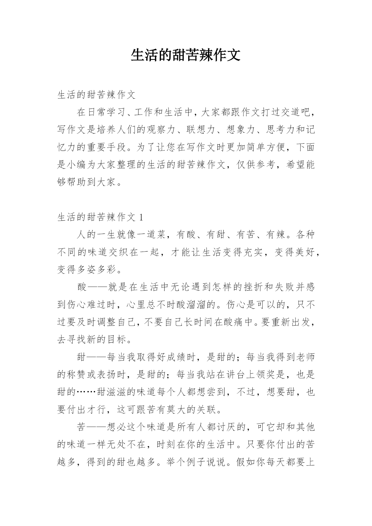生活的甜苦辣作文生活的甜苦辣作文在日常学习、工作和生活中,大家都跟作文打过交道吧,写作文是培养人们的观察力、联想力、想象力、思考力和记忆力的重要手段。为了让您在写作文时更加简单方便,下面是小编为大家整理的生活的甜苦辣作文,仅供参考,希望能够帮助到大家。生活的甜苦辣作文1人的一生就像一道菜,有酸、有甜、有苦、有辣。各种不同的味道交织在一起,才能让生活变得充实,变得美好,变得多姿多彩。酸——就是在生活中无论遇到怎样的挫折和失败并感到伤心难过时,心里总不时酸溜溜的。伤心是可以的,只不过要及时调整自己,不要自己长