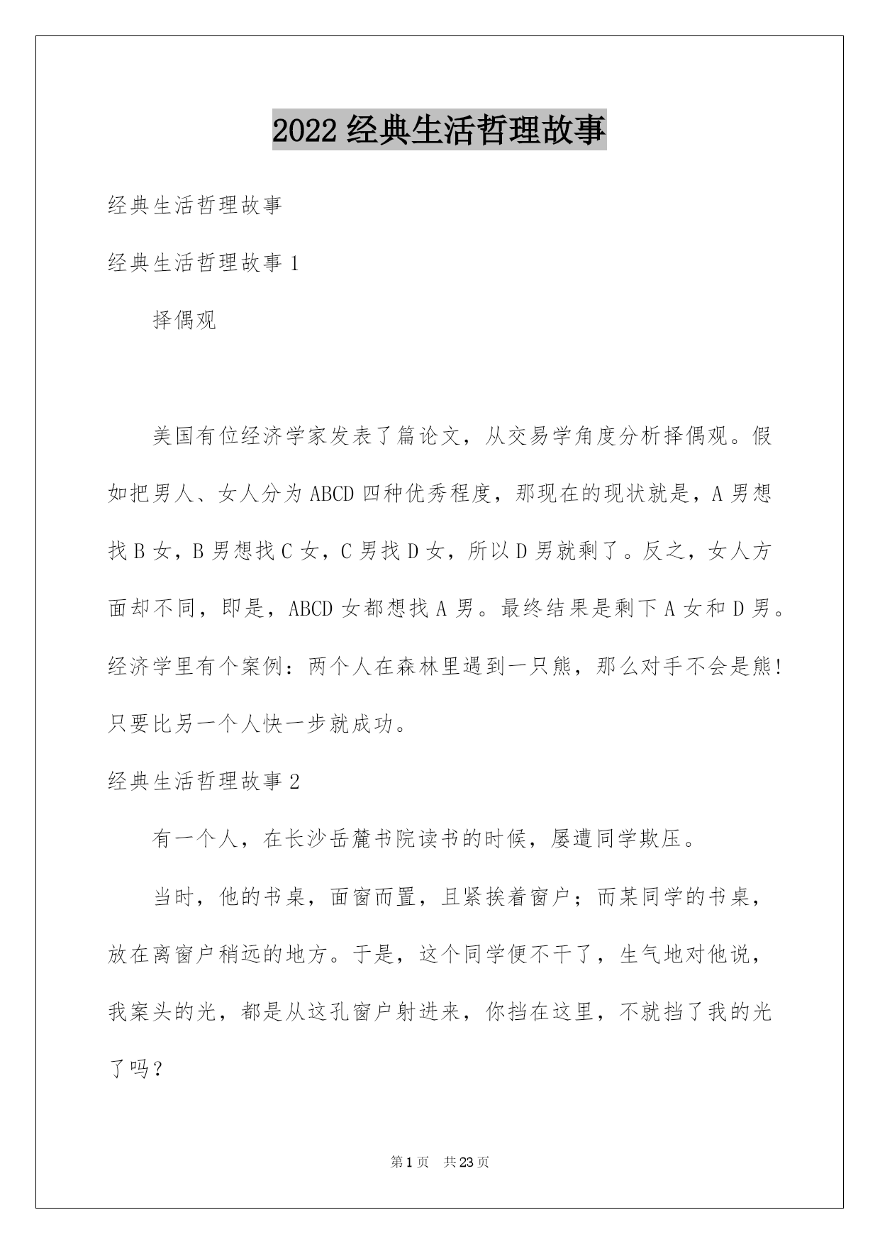 2022经典生活哲理故事.docx