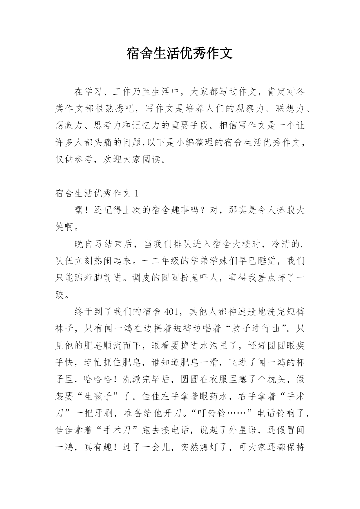 宿舍生活优秀作文在学习、工作乃至生活中,大家都写过作文,肯定对各类作文都很熟悉吧,写作文是培养人们的观察力、联想力、想象力、思考力和记忆力的重要手段。相信写作文是一个让许多人都头痛的问题,以下是小编整理的宿舍生活优秀作文,仅供参考,欢迎大家阅读。宿舍生活优秀作文1嘿!还记得上次的宿舍趣事吗?对,那真是令人捧腹大笑啊。晚自习结束后,当我们排队进入宿舍大楼时,冷清的.队伍立刻热闹起来。一二年级的学弟学妹们早已睡觉,我们只能踮着脚前进。调皮的圆圆扮鬼吓人,害得我差点摔了一跤。终于到了我们的宿舍401,其他人都神