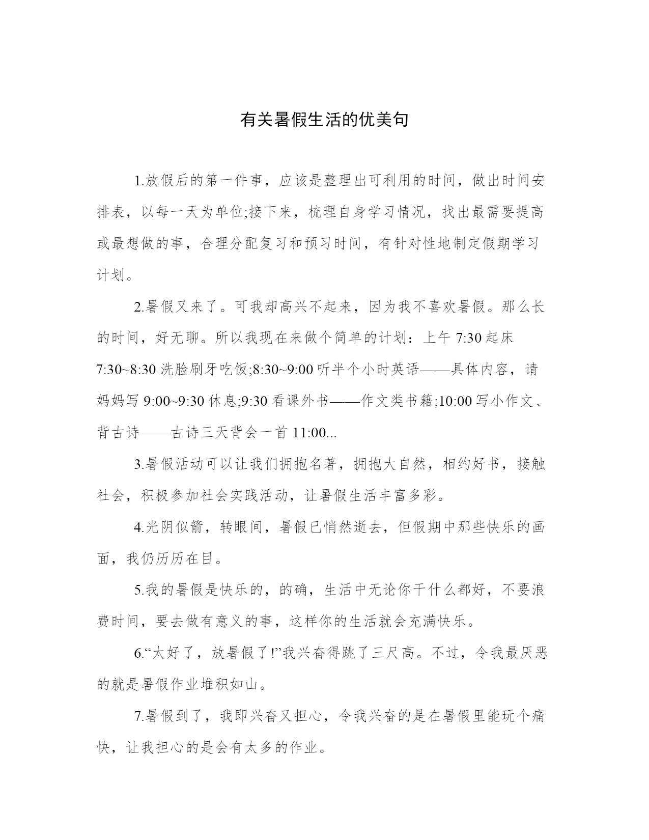 有关暑假生活的优美句.docx