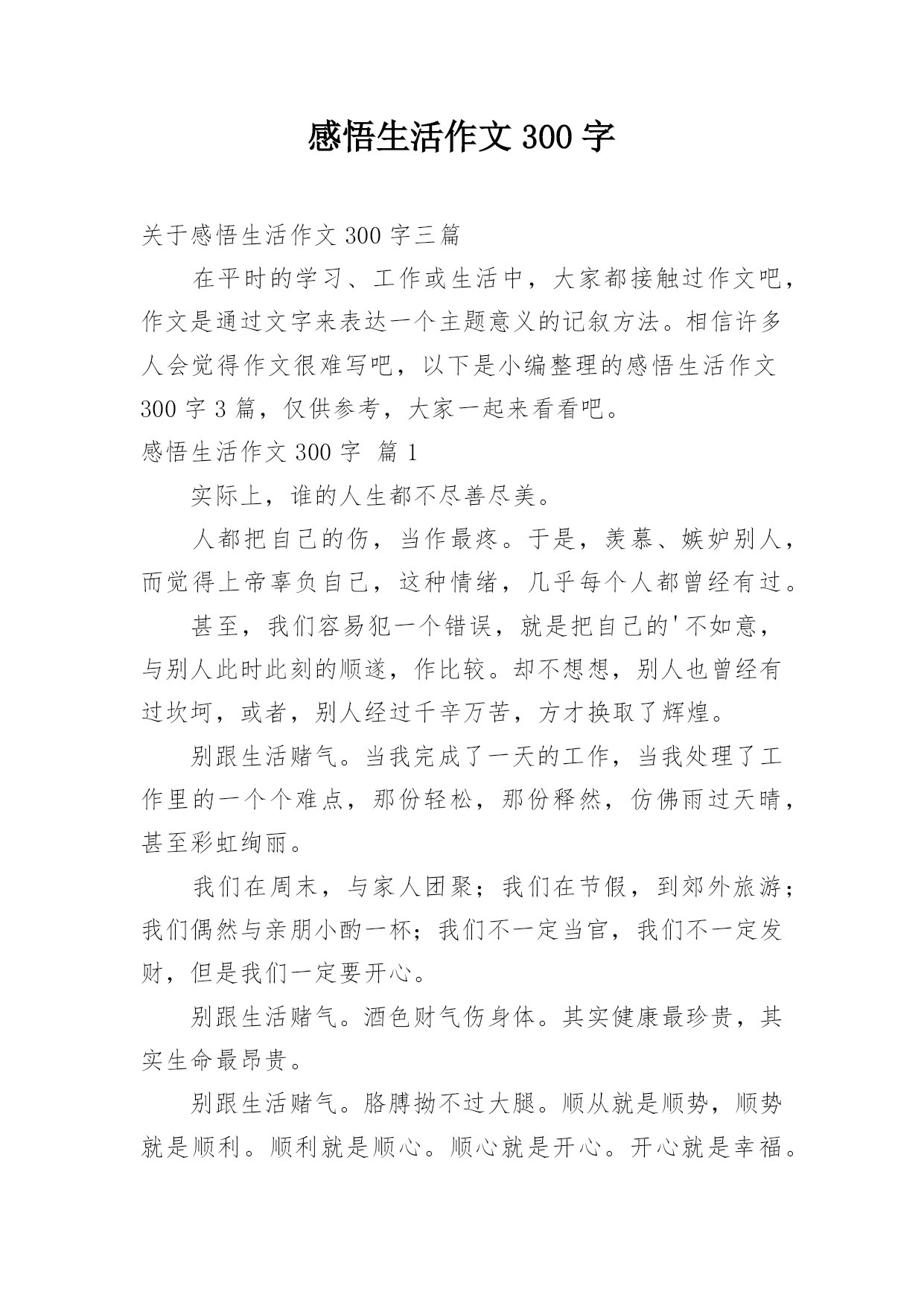 感悟生活作文300字关于感悟生活作文300字三篇在平时的学习、工作或生活中,大家都接触过作文吧,作文是通过文字来表达一个主题意义的记叙方法。相信许多人会觉得作文很难写吧,以下是小编整理的感悟生活作文300字3篇,仅供参考,大家一起来看看吧。感悟生活作文300字篇1实际上,谁的人生都不尽善尽美。人都把自己的伤,当作最疼。于是,羡慕、嫉妒别人,而觉得上帝辜负自己,这种情绪,几乎每个人都曾经有过。甚至,我们容易犯一个错误,就是把自己的'不如意,与别人此时此刻的顺遂,作比较。却不想想,别人也曾经有过坎坷,或者,别