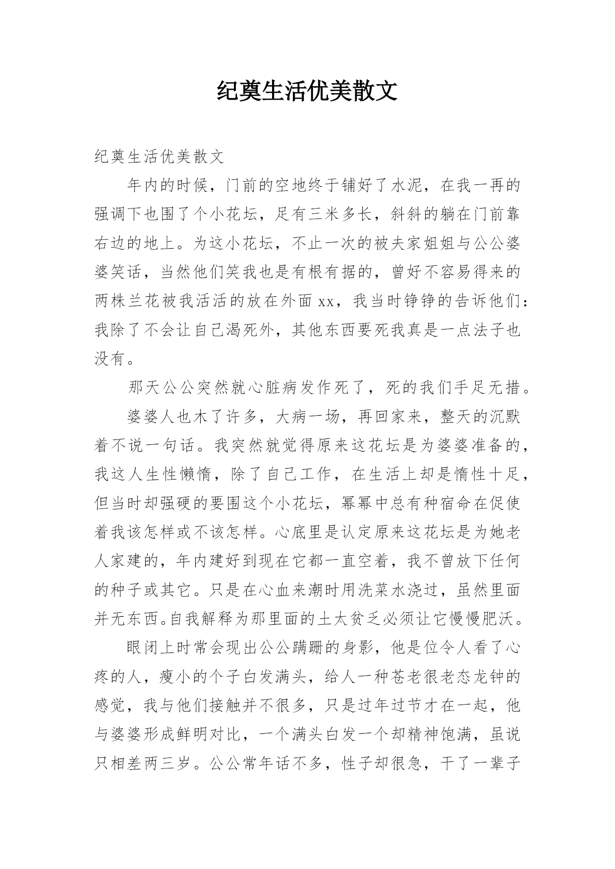 纪奠生活优美散文纪奠生活优美散文年内的时候,门前的空地终于铺好了水泥,在我一再的强调下也围了个小花坛,足有三米多长,斜斜的躺在门前靠右边的地上。为这小花坛,不止一次的被夫家姐姐与公公婆婆笑话,当然他们笑我也是有根有据的,曾好不容易得来的两株兰花被我活活的放在外面xx,我当时铮铮的告诉他们:我除了不会让自己渴死外,其他东西要死我真是一点法子也没有。那天公公突然就心脏病发作死了,死的我们手足无措。婆婆人也木了许多,大病一场,再回家来,整天的沉默着不说一句话。我突然就觉得原来这花坛是为婆婆准备的,我这人生性懒惰