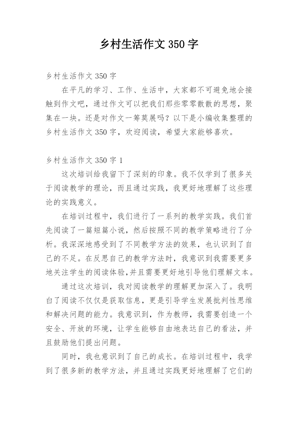 乡村生活作文350字乡村生活作文350字在平凡的学习、工作、生活中,大家都不可避免地会接触到作文吧,通过作文可以把我们那些零零散散的思想,聚集在一块。还是对作文一筹莫展吗?以下是小编收集整理的乡村生活作文350字,欢迎阅读,希望大家能够喜欢。乡村生活作文350字1这次培训给我留下了深刻的印象。我不仅学到了很多关于阅读教学的理论,而且通过实践,我更好地理解了这些理论的实践意义。在培训过程中,我们进行了一系列的教学实践。我们首先阅读了一篇短篇小说,然后按照不同的教学策略进行了分析。我深深地感受到了不同教学方法