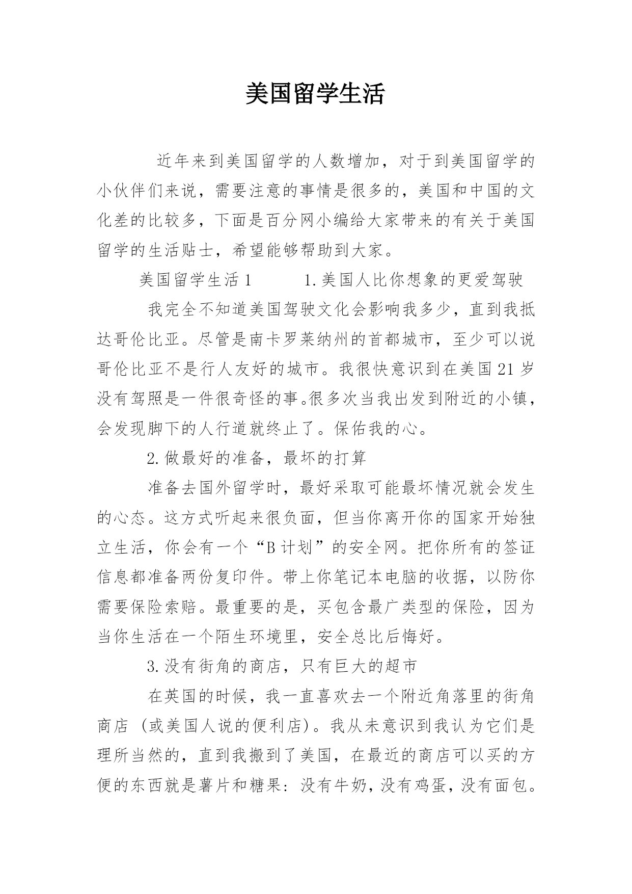 美国留学生活近年来到美国留学的人数增加,对于到美国留学的小伙伴们来说,需要注意的事情是很多的,美国和中国的文化差的比较多,下面是百分网小编给大家带来的有关于美国留学的生活贴士,希望能够帮助到大家。美国留学生活11.美国人比你想象的更爱驾驶我完全不知道美国驾驶文化会影响我多少,直到我抵达哥伦比亚。尽管是南卡罗莱纳州的首都城市,至少可以说哥伦比亚不是行人友好的城市。我很快意识到在美国21岁没有驾照是一件很奇怪的事。很多次当我出发到附近的小镇,会发现脚下的人行道就终止了。保佑我的心。2.做最好的准备,最坏的打算