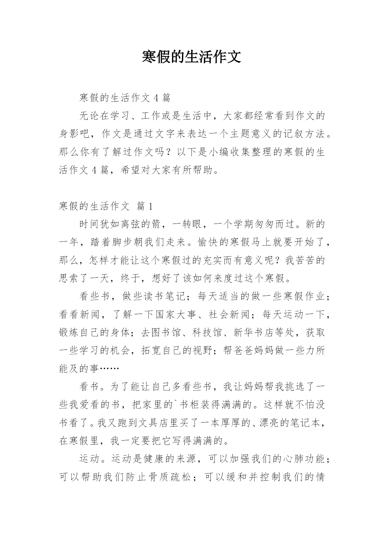 寒假的生活作文寒假的生活作文4篇无论在学习、工作或是生活中,大家都经常看到作文的身影吧,作文是通过文字来表达一个主题意义的记叙方法。那么你有了解过作文吗?以下是小编收集整理的寒假的生活作文4篇,希望对大家有所帮助。寒假的生活作文篇1时间犹如离弦的箭,一转眼,一个学期匆匆而过。新的一年,踏着脚步朝我们走来。愉快的寒假马上就要开始了,那么,怎样才能让这个寒假过的充实而有意义呢?我苦苦的思索了一天,终于,想好了该如何来度过这个寒假。看些书,做些读书笔记;每天适当的做一些寒假作业;看看新闻,了解一下国家大事、社会