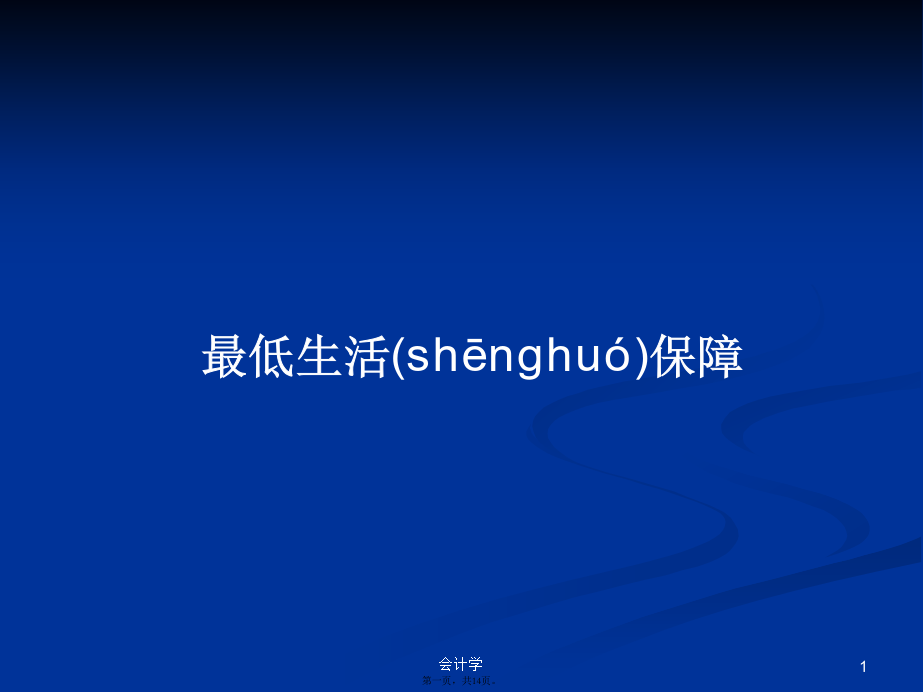 会计学本章(běnzhānɡ)重点19.1最低生活保障的含义、目标(mùbiāo)和原则19.2最低生活保障(bǎozhàng)标准19.2最低生活保障(bǎozhàng)标准19.3最低生活(shēnghuó)保障资金来源与制度运行19.3最低生活保障(bǎozhàng)资金来源与制度运行19.4中国城市(chéngshì)最低生活保障19.4中国城市最低生活(shēnghuó)保障19.4中国城市(chéngshì)最低生活保障19.5中国(zhōnɡɡuó)农村最低生活保障19.6发展(fāzhǎn