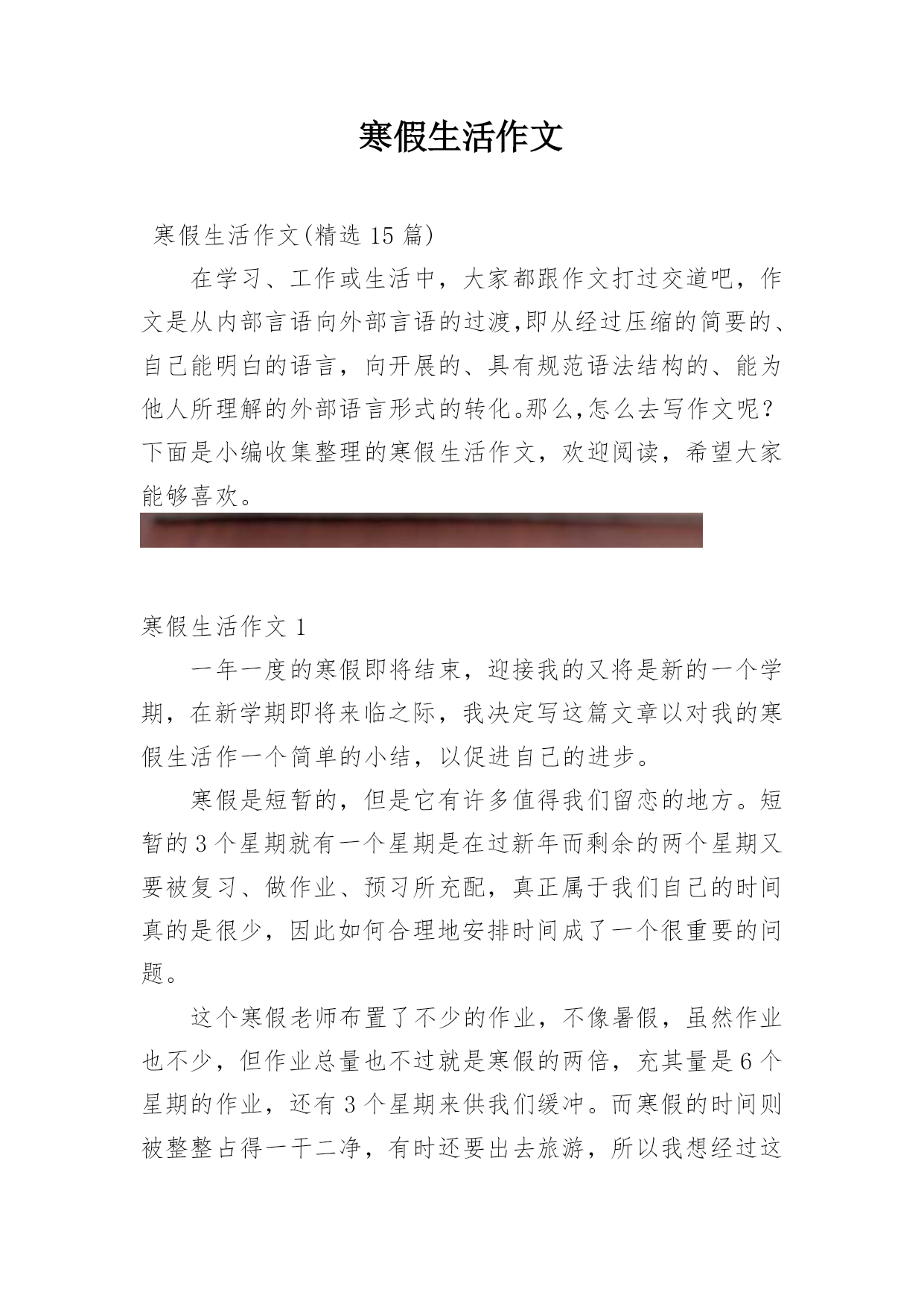 寒假生活作文寒假生活作文(精选15篇)在学习、工作或生活中,大家都跟作文打过交道吧,作文是从内部言语向外部言语的过渡,即从经过压缩的简要的、自己能明白的语言,向开展的、具有规范语法结构的、能为他人所理解的外部语言形式的转化。那么,怎么去写作文呢?下面是小编收集整理的寒假生活作文,欢迎阅读,希望大家能够喜欢。寒假生活作文1一年一度的寒假即将结束,迎接我的又将是新的一个学期,在新学期即将来临之际,我决定写这篇文章以对我的寒假生活作一个简单的小结,以促进自己的进步。寒假是短暂的,但是它有许多值得我们留恋的地方。
