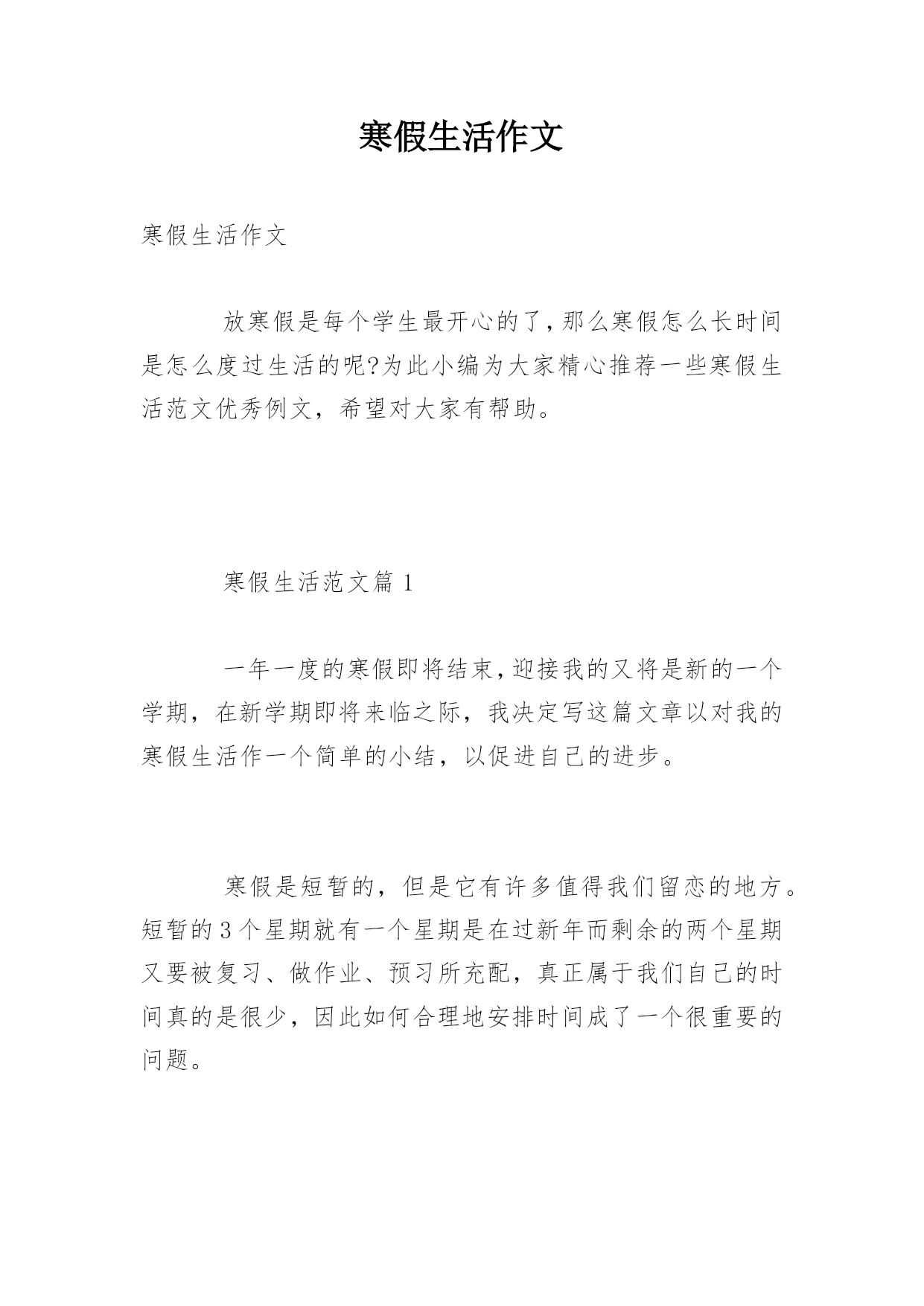 寒假生活作文寒假生活作文放寒假是每个学生最开心的了,那么寒假怎么长时间是怎么度过生活的呢?为此小编为大家精心推荐一些寒假生活范文优秀例文,希望对大家有帮助。寒假生活范文篇1一年一度的寒假即将结束,迎接我的又将是新的一个学期,在新学期即将来临之际,我决定写这篇文章以对我的寒假生活作一个简单的小结,以促进自己的进步。寒假是短暂的,但是它有许多值得我们留恋的地方。短暂的3个星期就有一个星期是在过新年而剩余的两个星期又要被复习、做作业、预习所充配,真正属于我们自己的时间真的是很少,因此如何合理地安排时间成了一个很