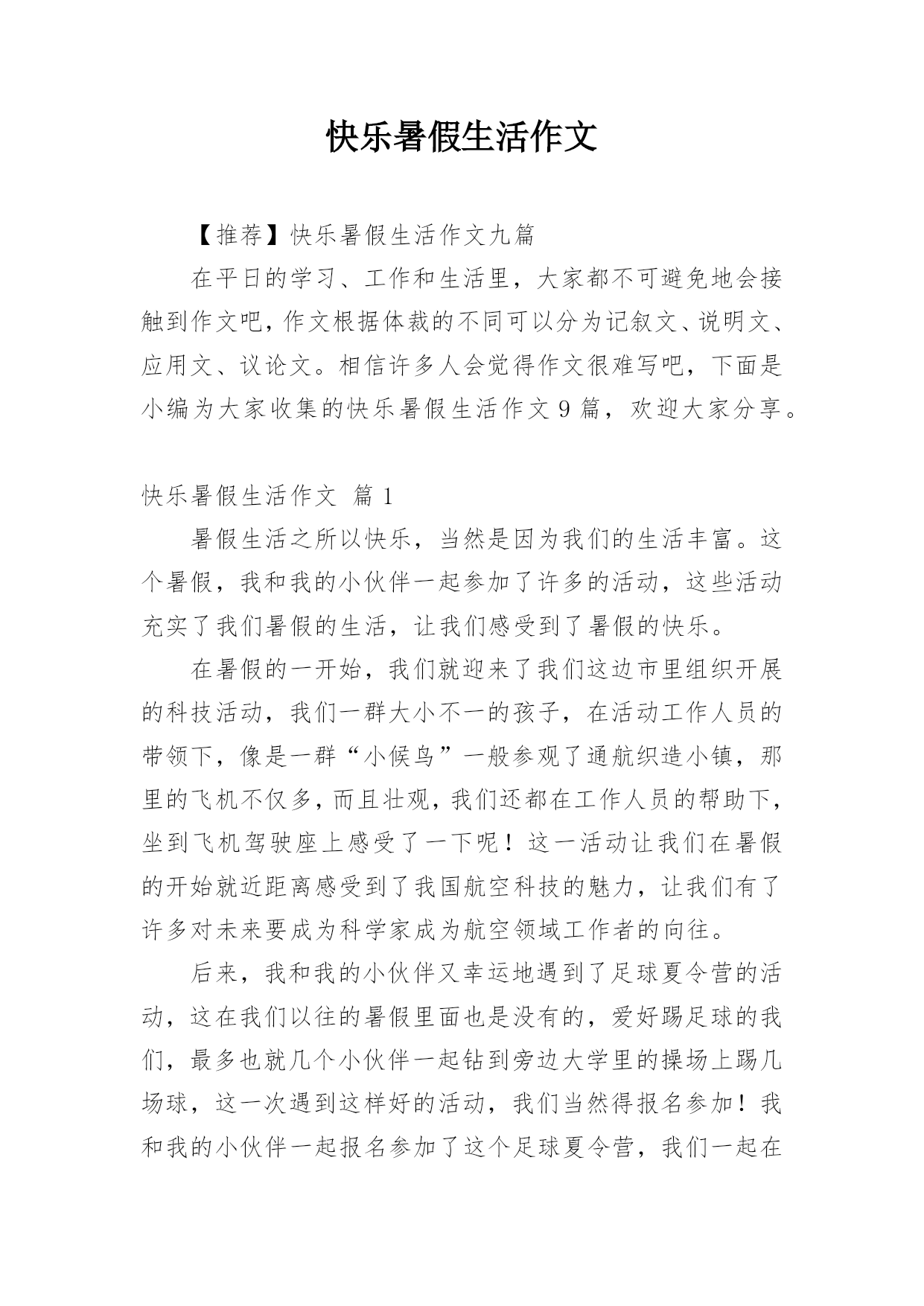 快乐暑假生活作文【推荐】快乐暑假生活作文九篇在平日的学习、工作和生活里,大家都不可避免地会接触到作文吧,作文根据体裁的不同可以分为记叙文、说明文、应用文、议论文。相信许多人会觉得作文很难写吧,下面是小编为大家收集的快乐暑假生活作文9篇,欢迎大家分享。快乐暑假生活作文篇1暑假生活之所以快乐,当然是因为我们的生活丰富。这个暑假,我和我的小伙伴一起参加了许多的活动,这些活动充实了我们暑假的生活,让我们感受到了暑假的快乐。在暑假的一开始,我们就迎来了我们这边市里组织开展的科技活动,我们一群大小不一的孩子,在活动工