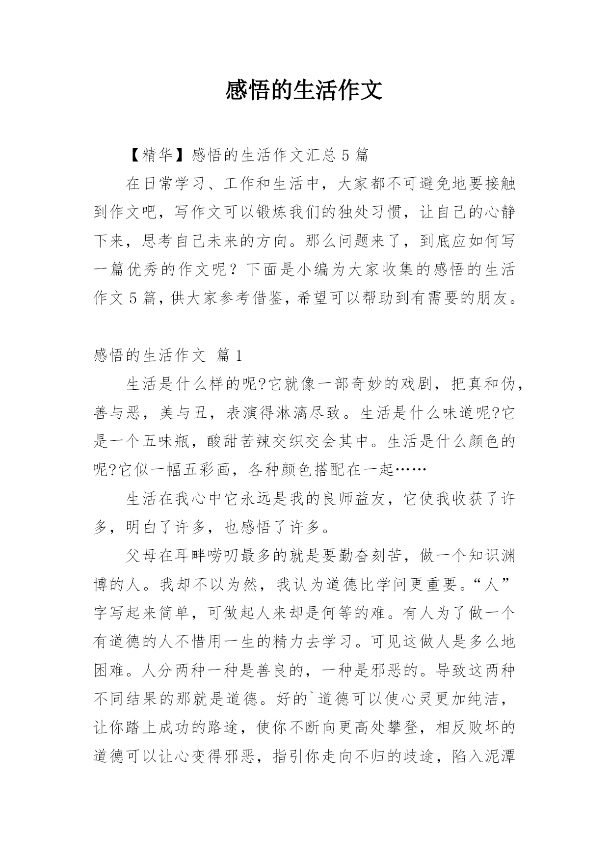 感悟的生活作文【精华】感悟的生活作文汇总5篇在日常学习、工作和生活中,大家都不可避免地要接触到作文吧,写作文可以锻炼我们的独处习惯,让自己的心静下来,思考自己未来的方向。那么问题来了,到底应如何写一篇优秀的作文呢?下面是小编为大家收集的感悟的生活作文5篇,供大家参考借鉴,希望可以帮助到有需要的朋友。感悟的生活作文篇1生活是什么样的呢?它就像一部奇妙的戏剧,把真和伪,善与恶,美与丑,表演得淋漓尽致。生活是什么味道呢?它是一个五味瓶,酸甜苦辣交织交会其中。生活是什么颜色的呢?它似一幅五彩画,各种颜色搭配在一起