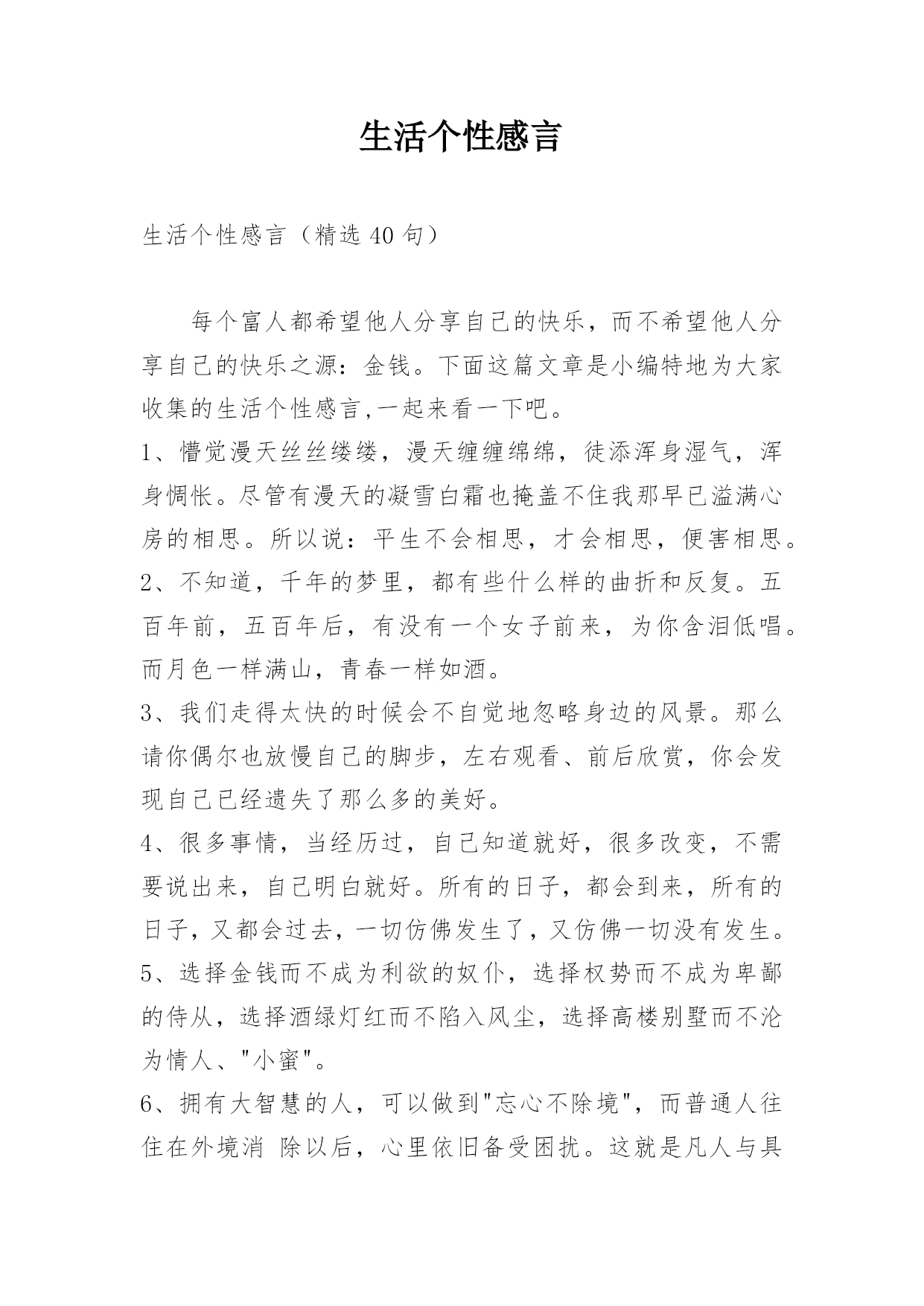 生活个性感言精选.docx