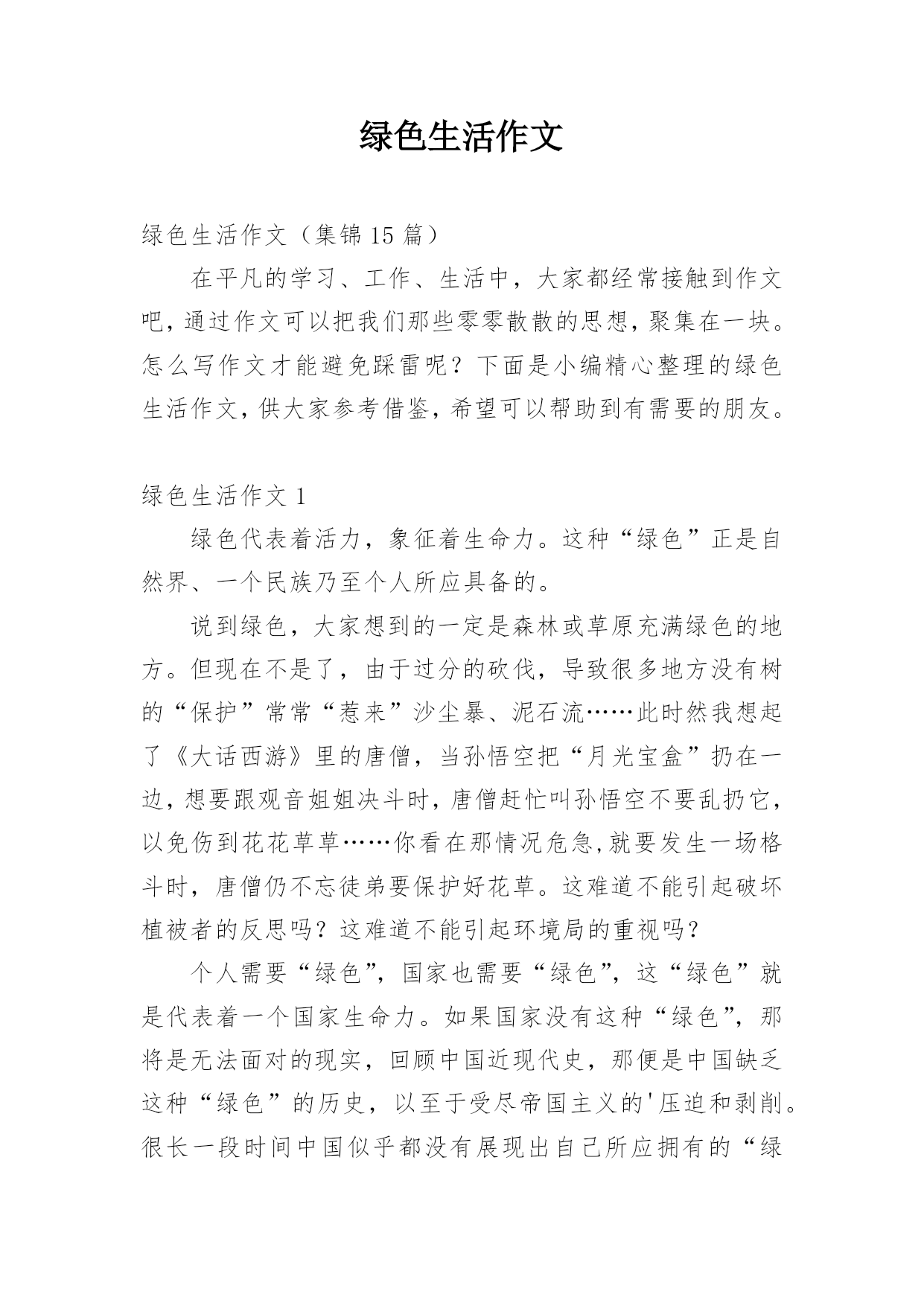 绿色生活作文绿色生活作文(集锦15篇)在平凡的学习、工作、生活中,大家都经常接触到作文吧,通过作文可以把我们那些零零散散的思想,聚集在一块。怎么写作文才能避免踩雷呢?下面是小编精心整理的绿色生活作文,供大家参考借鉴,希望可以帮助到有需要的朋友。绿色生活作文1绿色代表着活力,象征着生命力。这种“绿色”正是自然界、一个民族乃至个人所应具备的。说到绿色,大家想到的一定是森林或草原充满绿色的地方。但现在不是了,由于过分的砍伐,导致很多地方没有树的“保护”常常“惹来”沙尘暴、泥石流……此时然我想起了《大话西游》里的