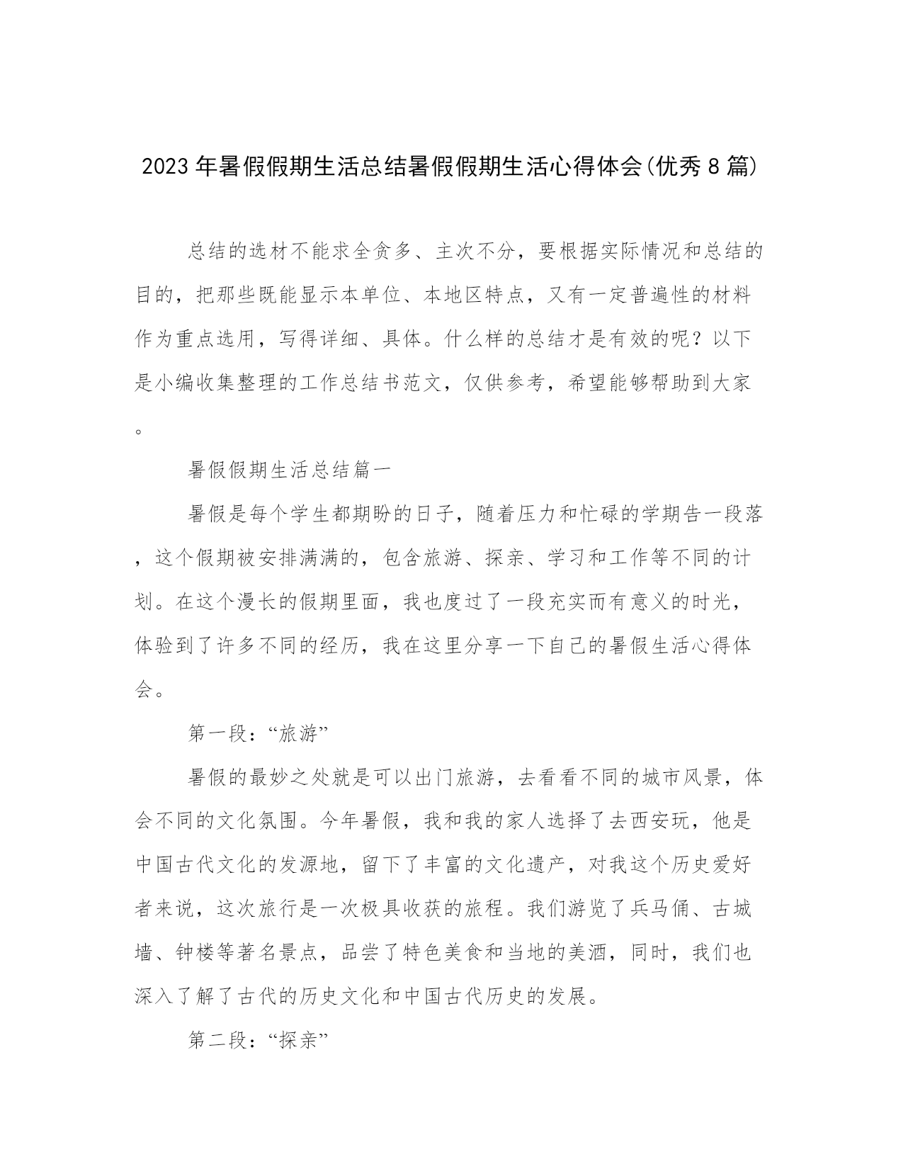 2023年暑假假期生活总结暑假假期生活心得体会(优秀8篇).docx