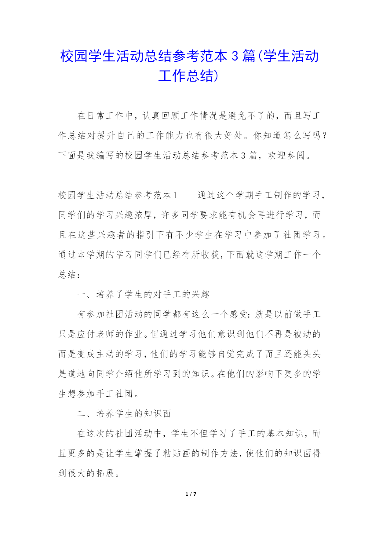 校园学生活动总结参考范本3篇(学生活动工作总结).docx