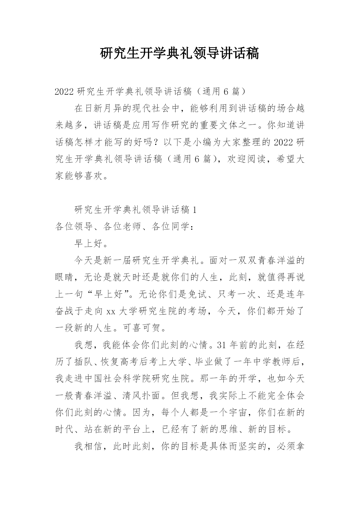 研究生开学典礼领导讲话稿2022研究生开学典礼领导讲话稿(通用6篇)在日新月异的现代社会中,能够利用到讲话稿的场合越来越多,讲话稿是应用写作研究的重要文体之一。你知道讲话稿怎样才能写的好吗?以下是小编为大家整理的2022研究生开学典礼领导讲话稿(通用6篇),欢迎阅读,希望大家能够喜欢。研究生开学典礼领导讲话稿1各位领导、各位老师、各位同学:早上好。今天是新一届研究生开学典礼。面对一双双青春洋溢的眼睛,无论是就天时还是就你们的人生,此刻,就值得再说上一句“早上好”。无论你们是免试、只考一次、还是连年奋战于走