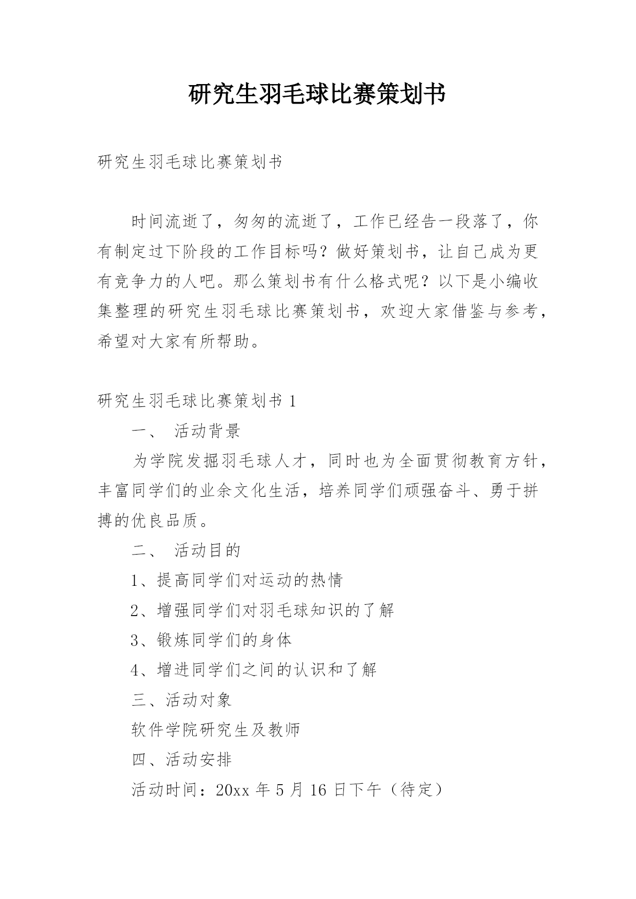研究生羽毛球比赛策划书研究生羽毛球比赛策划书时间流逝了,匆匆的流逝了,工作已经告一段落了,你有制定过下阶段的工作目标吗?做好策划书,让自己成为更有竞争力的人吧。那么策划书有什么格式呢?以下是小编收集整理的研究生羽毛球比赛策划书,欢迎大家借鉴与参考,希望对大家有所帮助。研究生羽毛球比赛策划书1一、活动背景为学院发掘羽毛球人才,同时也为全面贯彻教育方针,丰富同学们的业余文化生活,培养同学们顽强奋斗、勇于拼搏的优良品质。二、活动目的1、提高同学们对运动的热情2、增强同学们对羽毛球知识的了解3、锻炼同学们的身体4