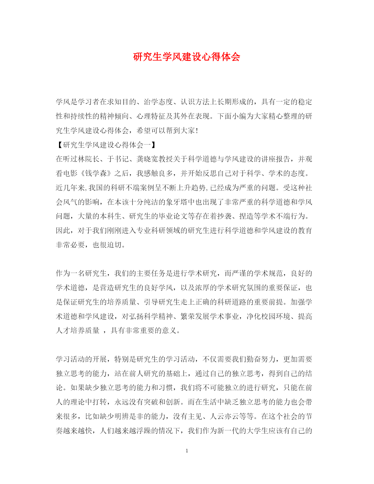 此资料由网络收集而来,如有侵权请告知上传者立即删除。资料共分享,我们负责传递知识。PAGEPAGE11研究生学风建设心得体会学风是学习者在求知目的、治学态度、认识方法上长期形成的,具有一定的稳定性和持续性的精神倾向、心理特征及其外在表现。下面小编为大家精心整理的研究生学风建设心得体会,希望可以帮到大家!【研究生学风建设心得体会一】在听过林院长、于书记、龚晓宽教授关于科学道德与学风建设的讲座报告,并观看电影《钱学森》之后,我感触良多,并开始反思自己对于科学、学术的态度。近几年来,我国的科研不端案