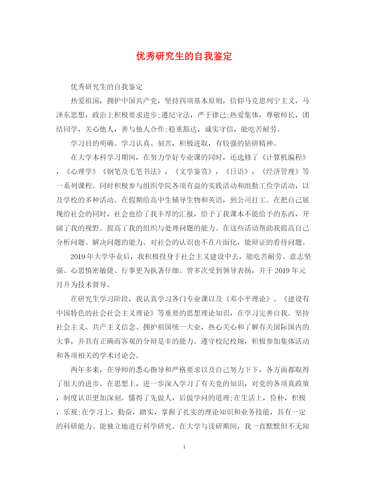 此资料由网络收集而来,如有侵权请告知上传者立即删除。资料共分享,我们负责传递知识。PAGEPAGE2优秀研究生的自我鉴定优秀研究生的自我鉴定热爱祖国,拥护中国共产党,坚持四项基本原则,信仰马克思列宁主义,马泽东思想,政治上积极要求进步;遵纪守法,严于律己;热爱集体,尊敬师长,团结同学,关心他人,善与他人合作;稳重豁达,诚实守信,能吃苦耐劳。学习目的明确、学习认真、刻苦,积极进取,有较强的钻研精神。在大学本科学习期间,在努力学好专业课的同时,还选修了《计算机编程》,《心理学》《钢笔及毛笔书法》,