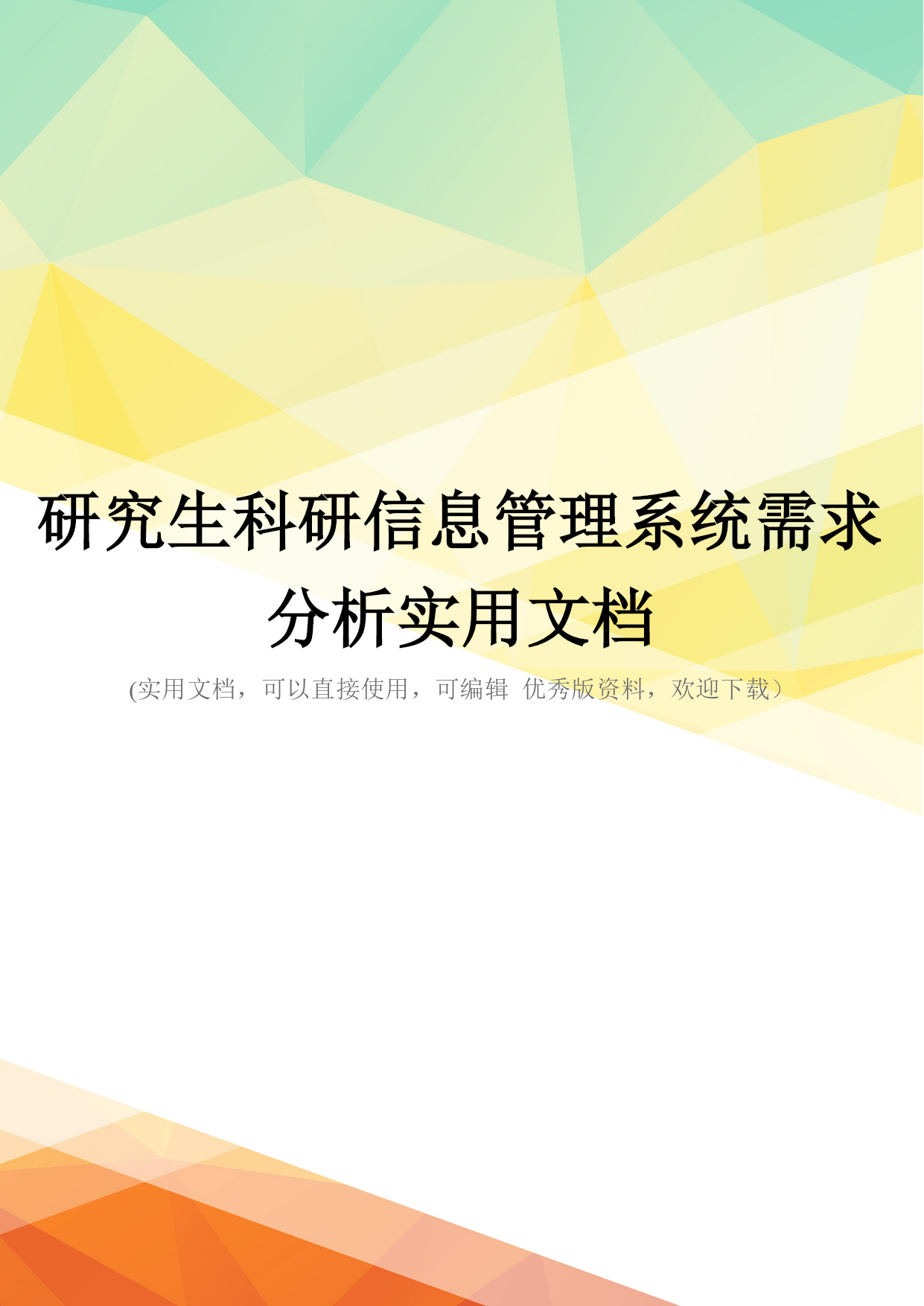 研究生科研信息管理系统需求分析实用文档(实用文档,可以直接使用,可编辑优秀版资料,欢迎下载)研究生科研信息管理系统需求分析研究生科研信息管理系统功能要求研究生科研信息管理系统的总目标是:在计算机网络,数据库和先进的开发平台上,利用现有的软件,配置一定的硬件,开发一个具有开放体系结构的、易扩充的、易维护的、具有良好人机交互界面的研究生科研信息管理系统,实现为导师和研究生提供充分的管理信息和快捷的查询。根据可行性研究的结果和客户的要求,分析现有情况及问题。系统流程图:1.客户端系统:在客户端系统的功能实现上,