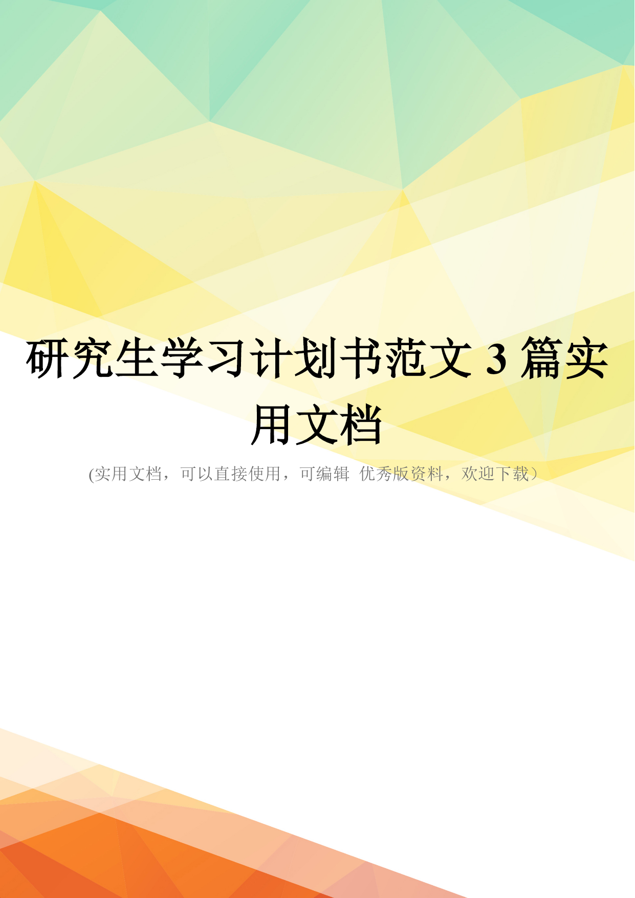 研究生学习计划书范文3篇实用文档(实用文档,可以直接使用,可编辑优秀版资料,欢迎下载)研究生学习计划书范文3篇研究生为学习制定学习计划书,本文是小编为大家整理的研究生的学习计划书范文,仅供参考。研究生学习计划书范文篇一:进入研究生阶段,感觉和本科学习有相当大的差别。走进研究生学习新阶段,我必须以端正的学习态度,正确的学习方法迎接新的生活。我将尝试着跨领域学习、研究,主动学习各方面知识,积极创新,不断进取,希望研究生三年生涯中所得所获将成为我人生中又一宝贵财富。我认为做好计划是极其重要的。我计划通过研究生三