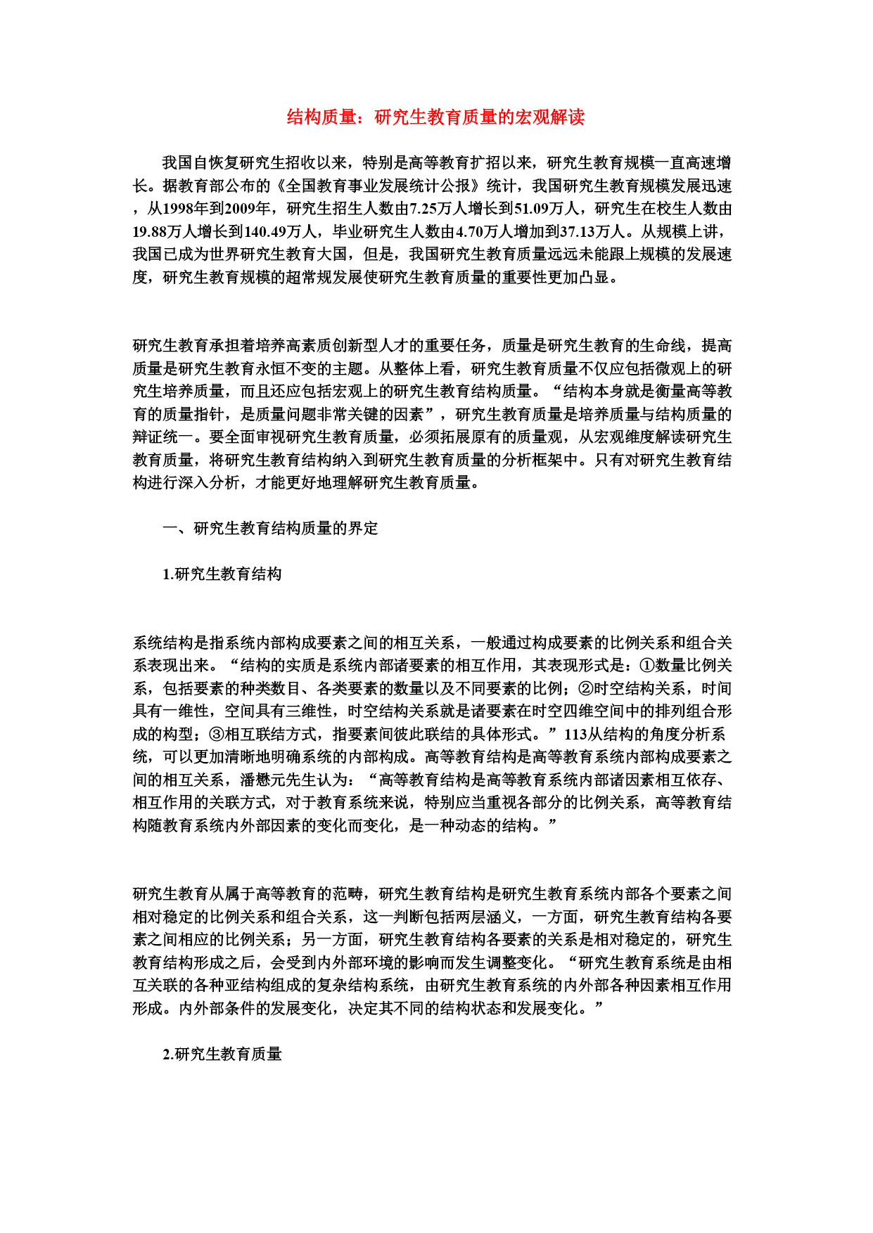 结构质量:研究生教育质量的宏观解读.doc