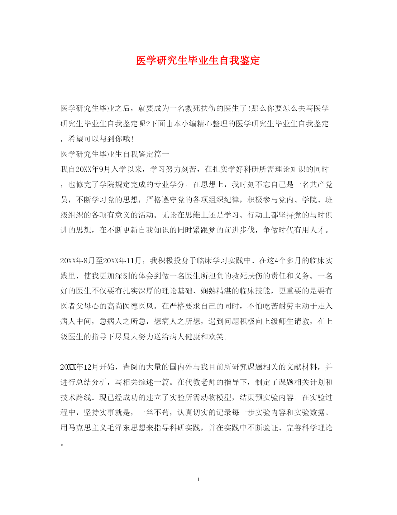 此资料由网络收集而来,如有侵权请告知上传者立即删除。资料共分享,我们负责传递知识。PAGEPAGE4医学研究生毕业生自我鉴定医学研究生毕业之后,就要成为一名救死扶伤的医生了!那么你要怎么去写医学研究生毕业生自我鉴定呢?下面由本小编精心整理的医学研究生毕业生自我鉴定,希望可以帮到你哦!医学研究生毕业生自我鉴定篇一我自20XX年9月入学以来,学习努力刻苦,在扎实学好科研所需理论知识的同时,也修完了学院规定完成的专业学分。在思想上,我时刻不忘自己是一名共产党员,不断学习党的思想,严格遵守党的各项组织