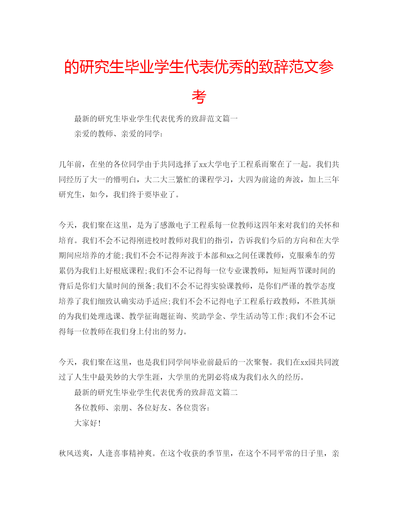 2022的研究生毕业学生代表优秀的致辞范文参考.docx
