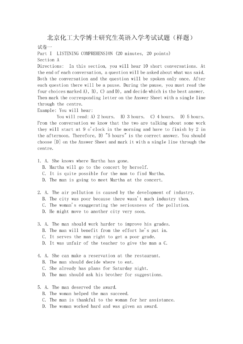 博士研究生英语入学考试试题(样题).pdf